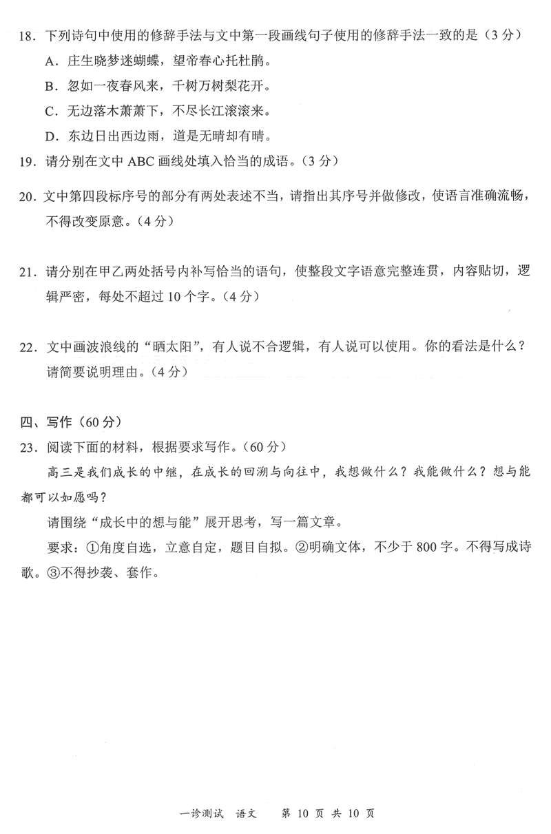 四川 语文试题
