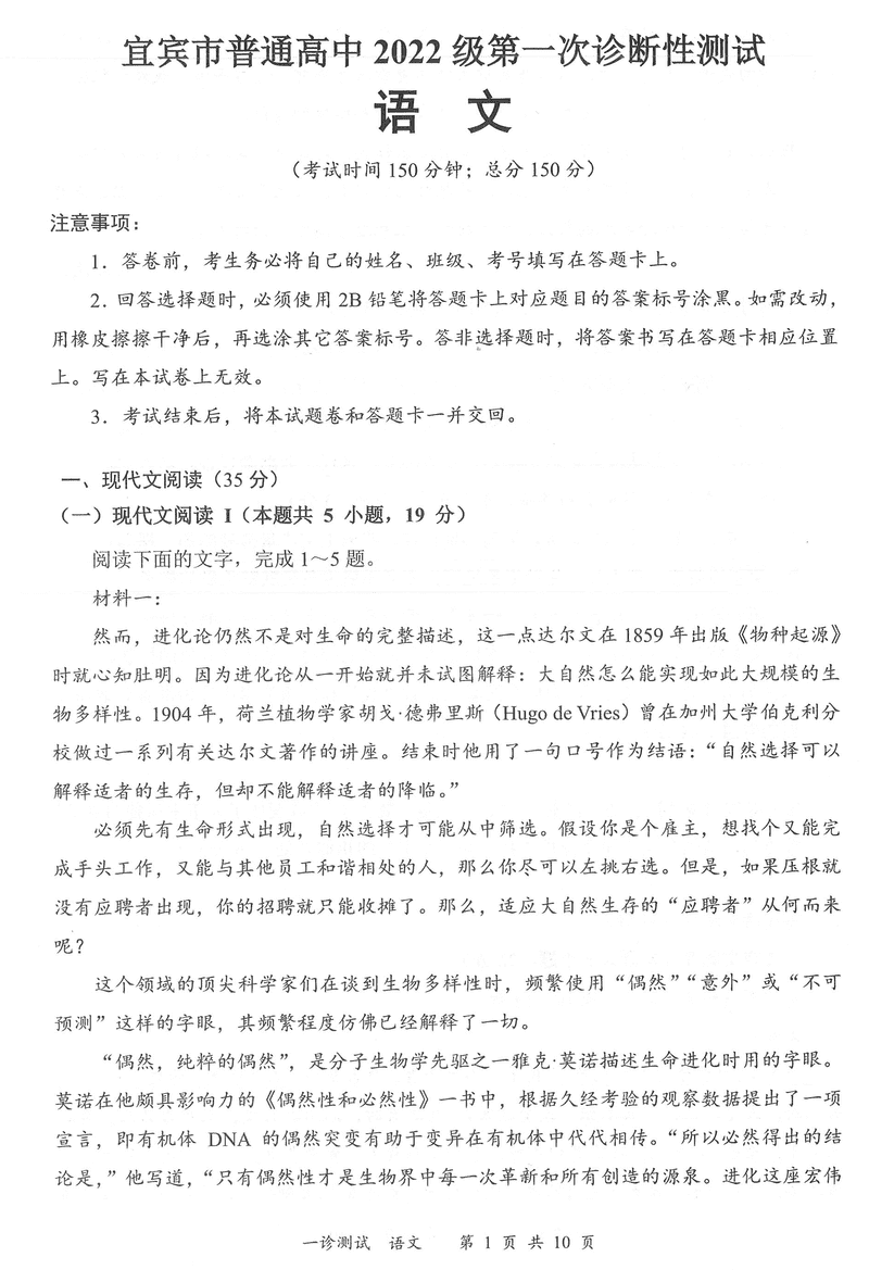 四川宜宾一诊2025届高三第一次诊断性语文考试已于近日开考,为方便考生考后及时查看考试情况,查漏补缺、弥补不足,本文整理了试题答案解析相关信息!