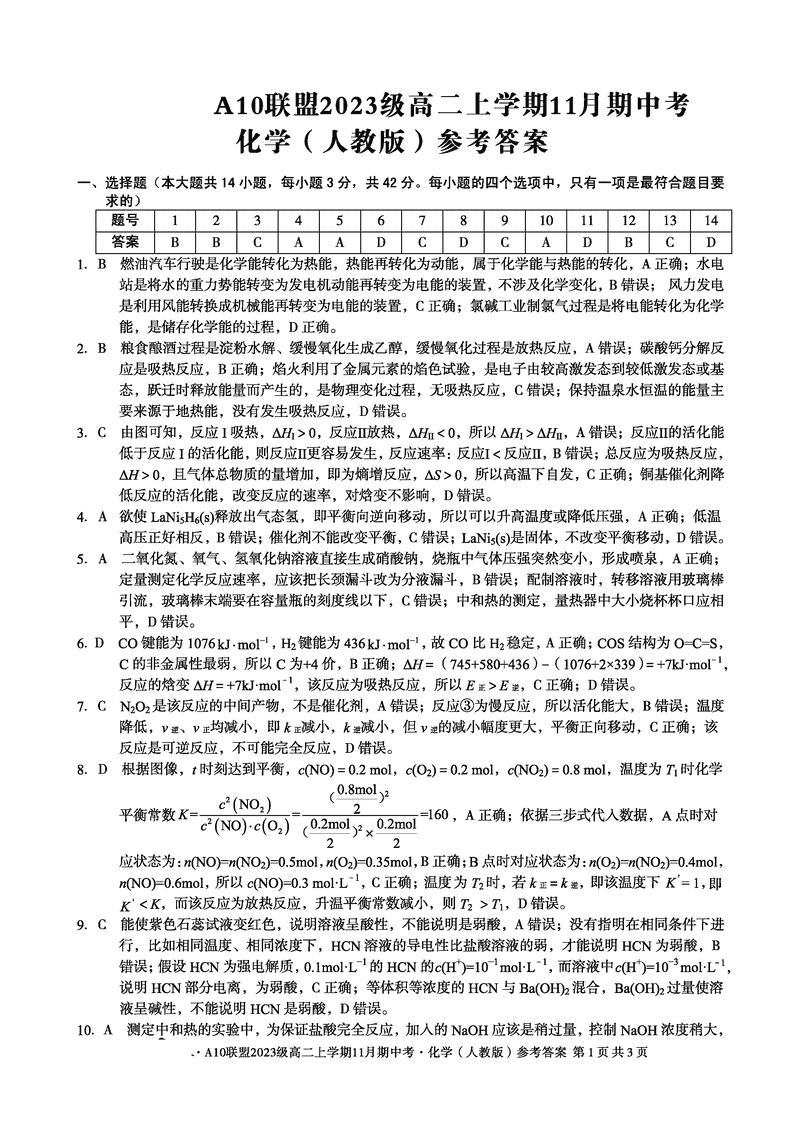 安徽A10联盟2024年11月高二期中化学考试已于近日开考,为方便考生考后及时查看考试情况,查漏补缺、弥补不足,本文整理了试题答案解析相关信息!