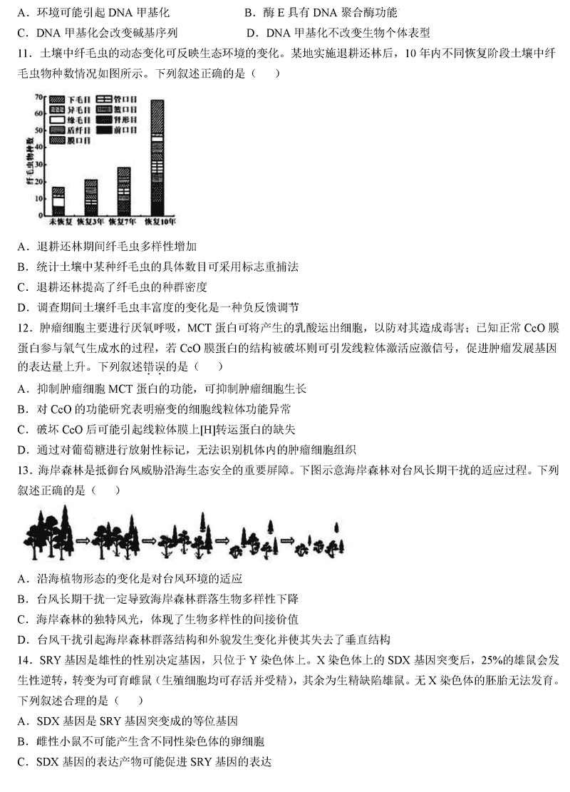 浙江省9+1高中联盟2025届高三期中生物试题及答案