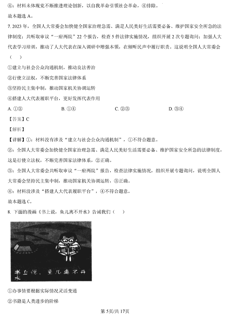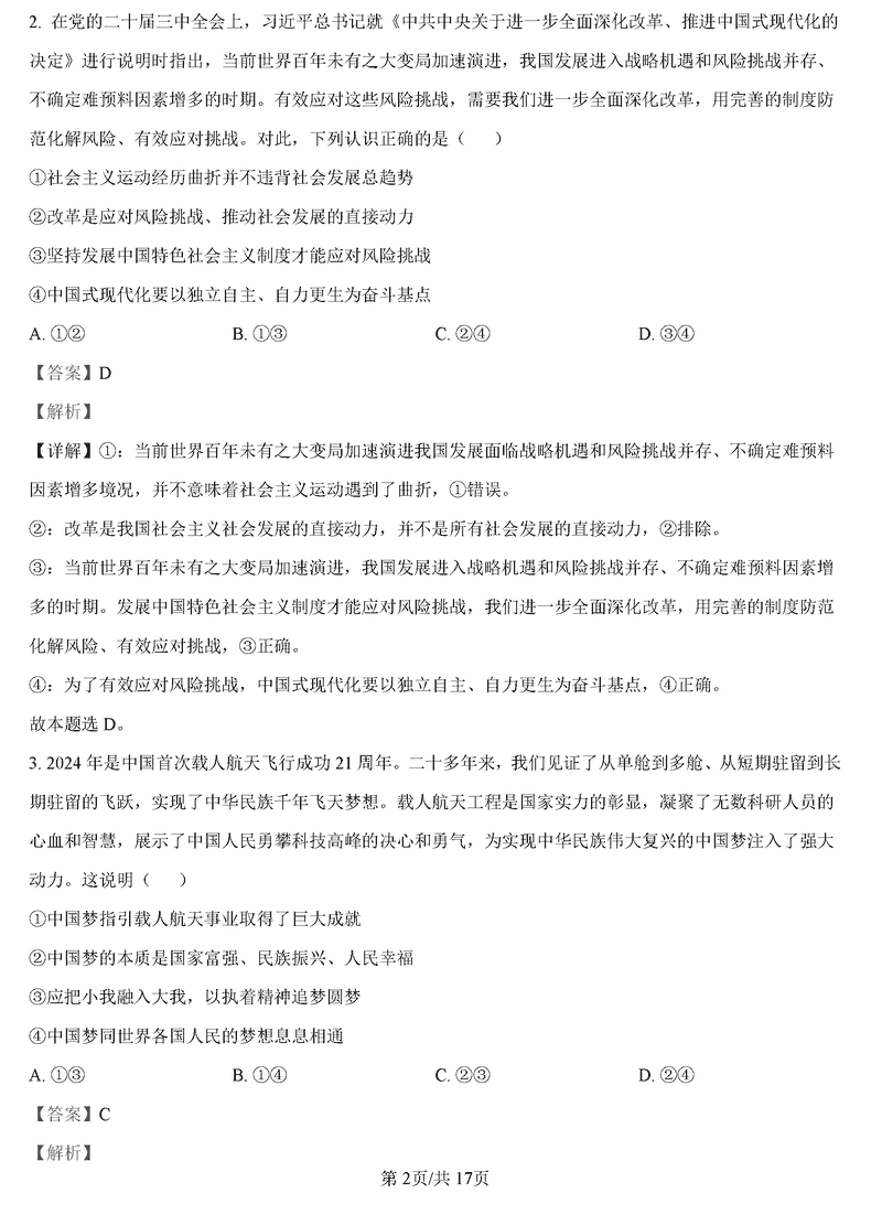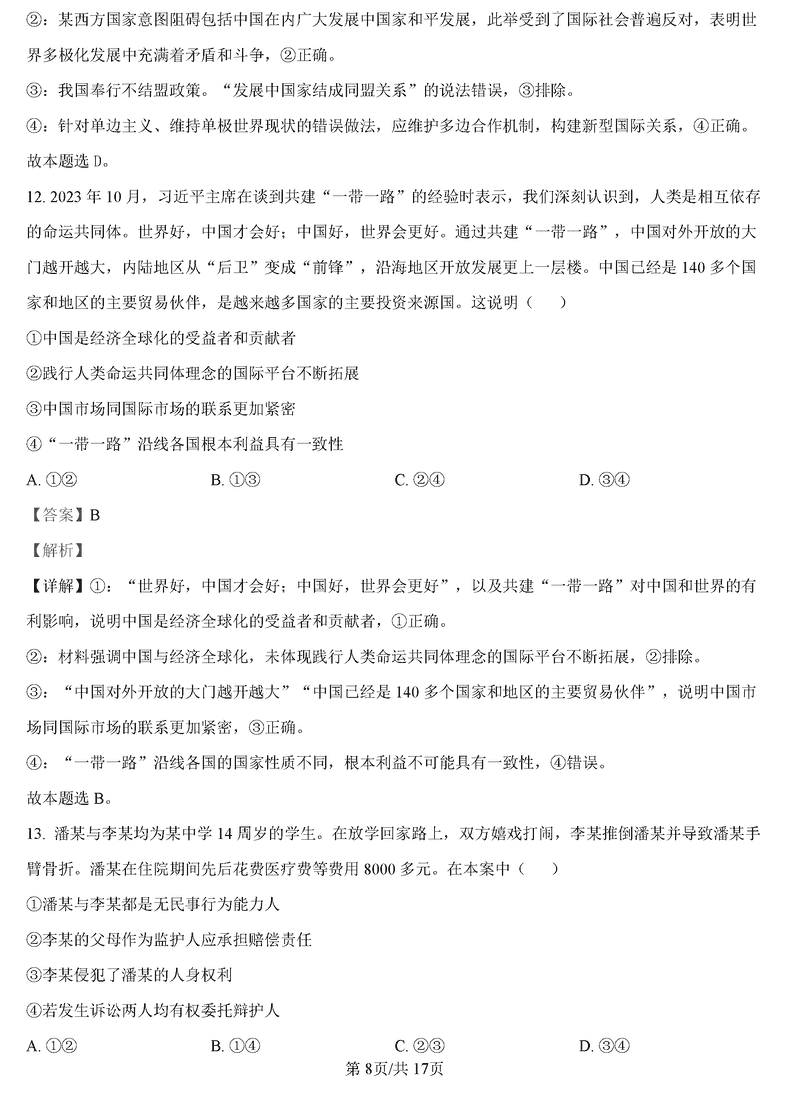 沧州市运东五校2025届高三上学期11月期中政治试题及答案