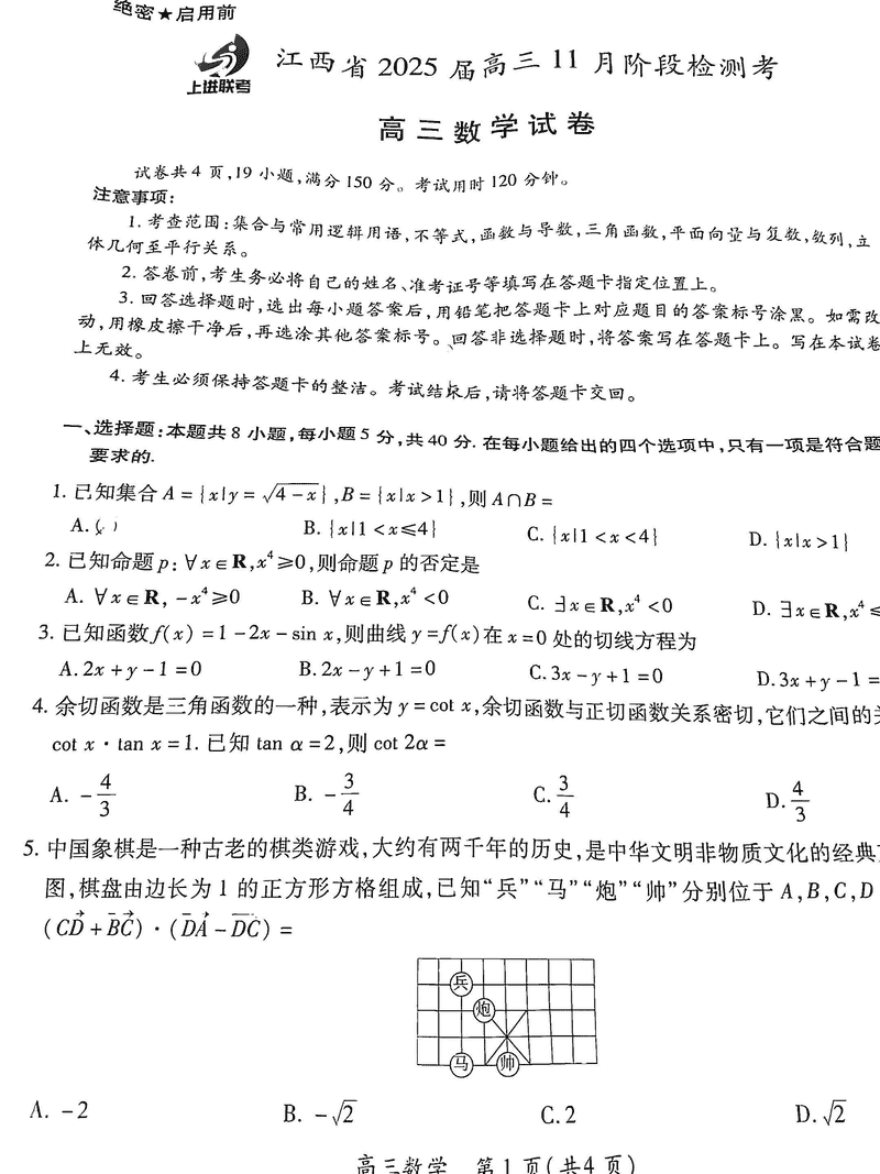 江西稳派上进联考2025届高三11月阶段检测数学试题及答案