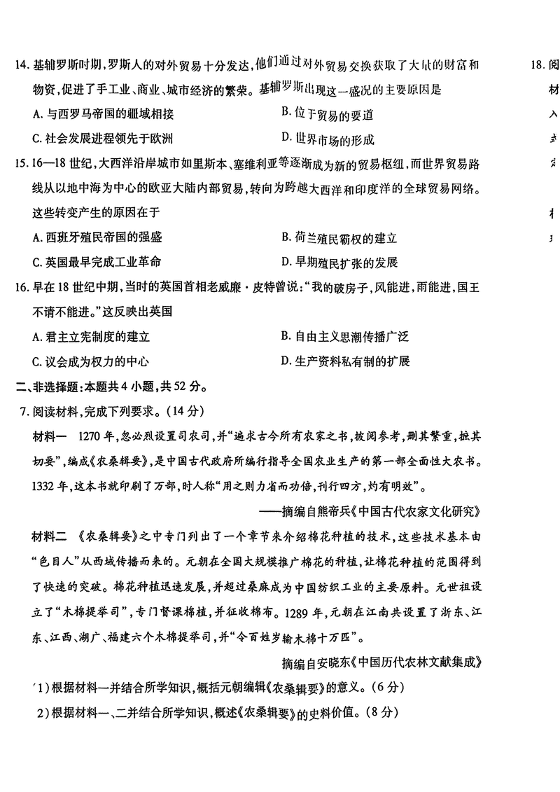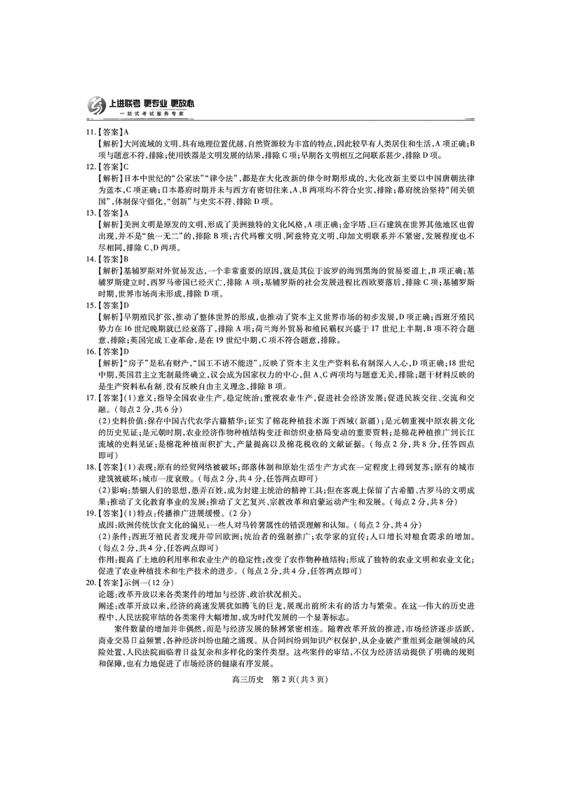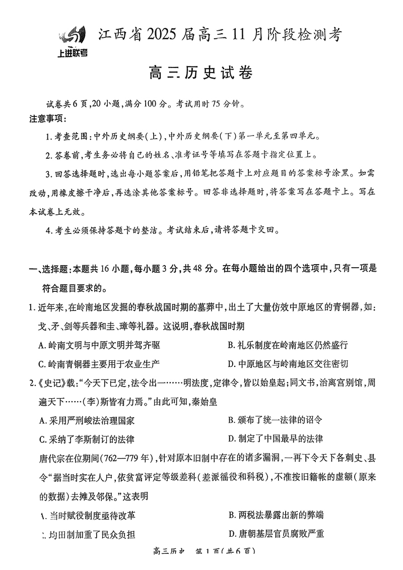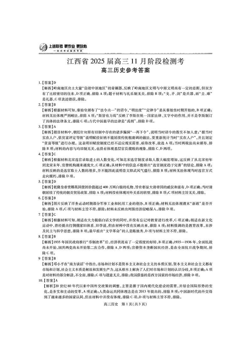 江西稳派上进联考2025届高三11月阶段检测历史试题及答案