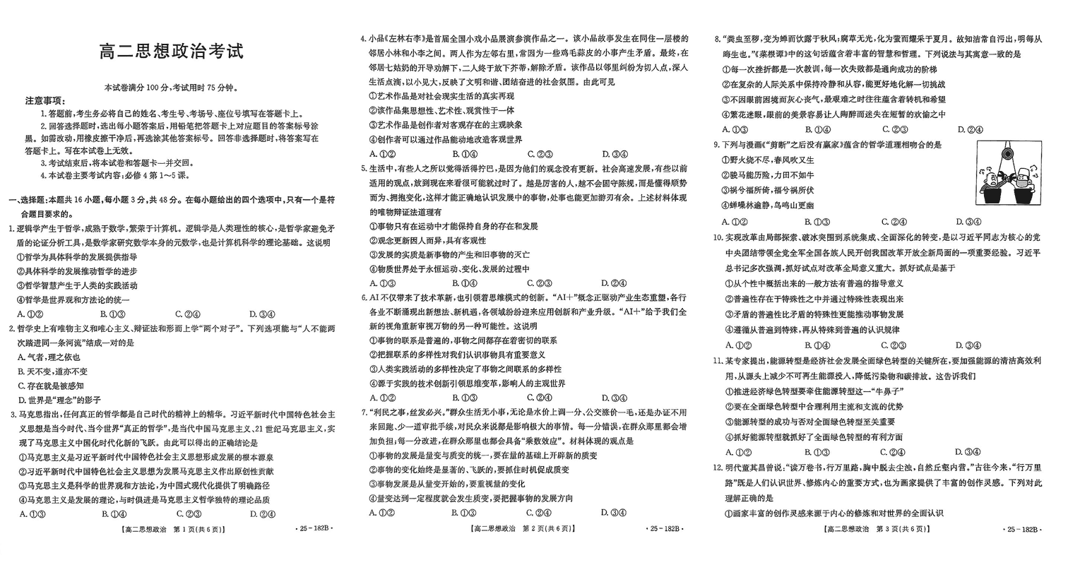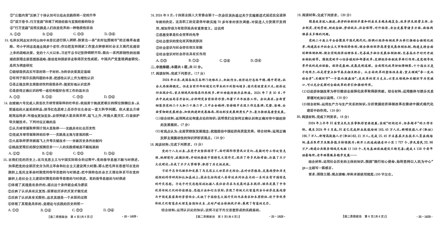 赤峰名校2024-2025学年高二期中联考政治试题及答案