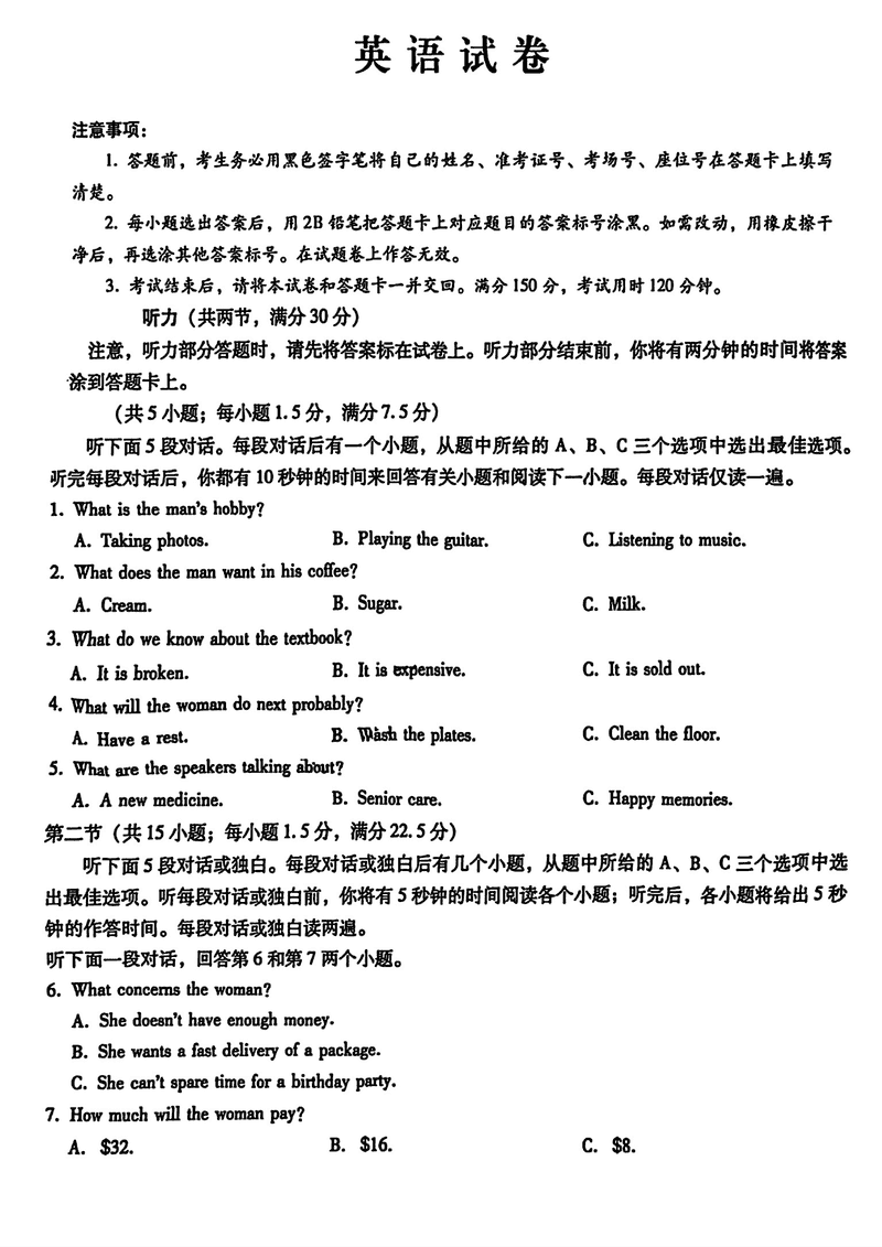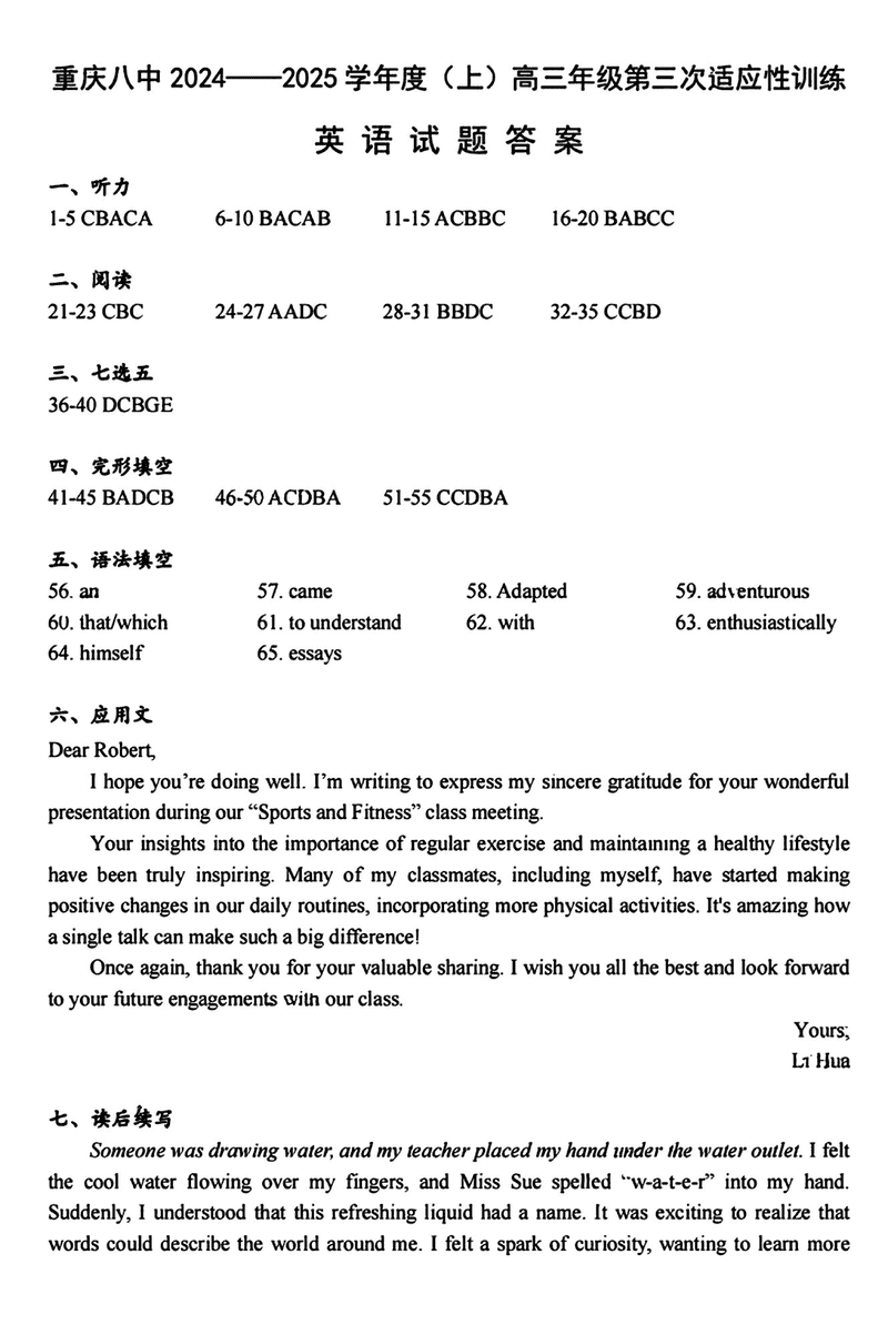 重庆八中2025届高三上学期适应性月考(三)英语考试已于近日开考,为方便考生考后及时查看考试情况,查漏补缺、弥补不足,本文整理了试题答案解析相关信息!