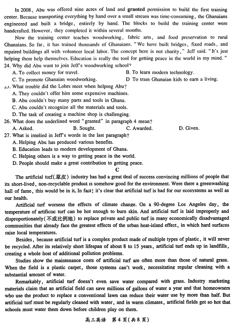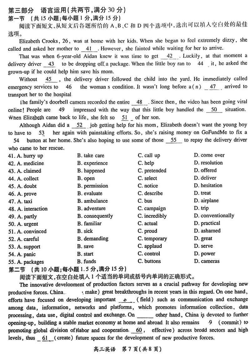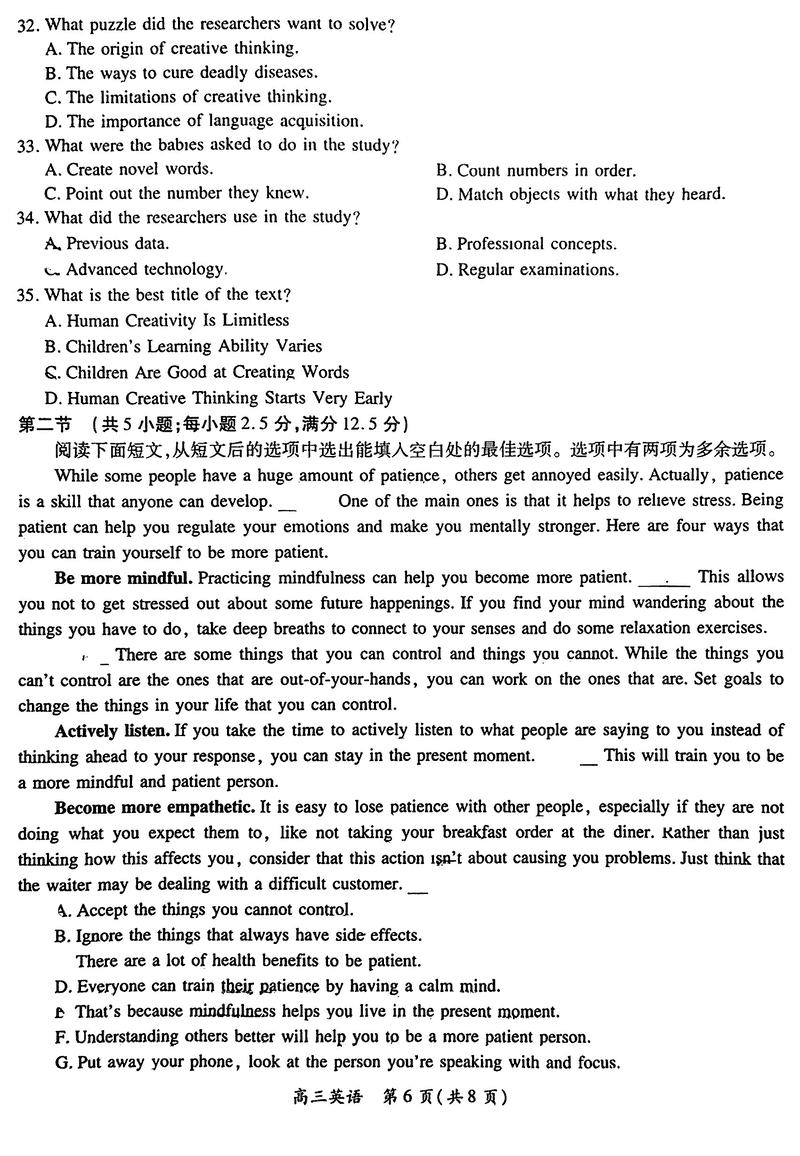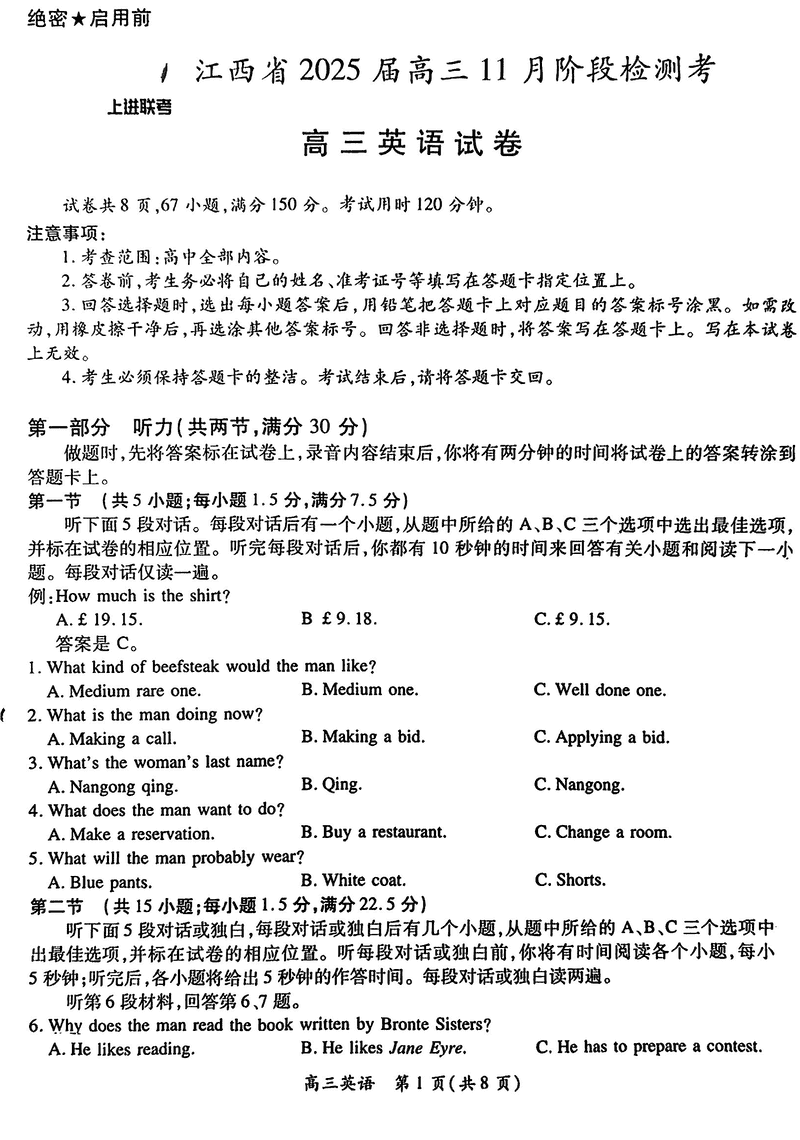 江西稳派上进联考2025届高三11月阶段检测英语试题及答案