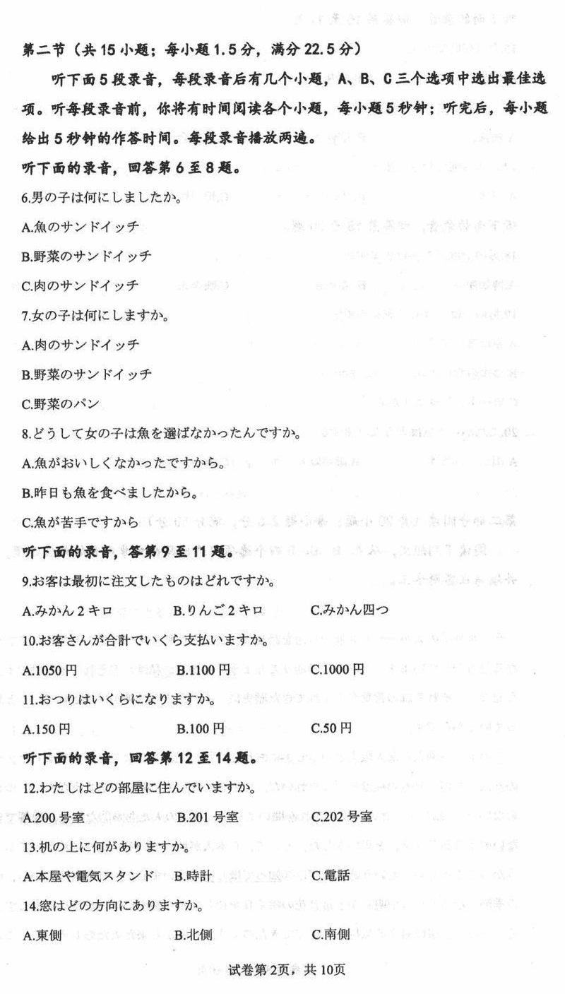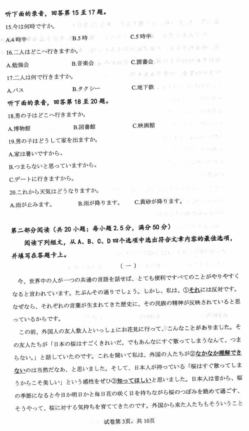 贵阳一中2025届高考适应性月考(三)日语试题及答案