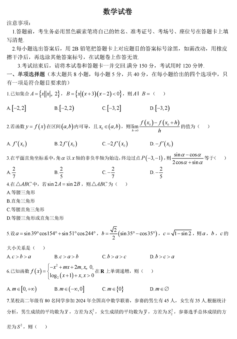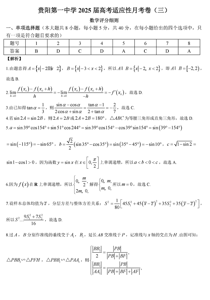 贵阳一中2025届高考适应性月考(三)数学考试已于近日开考,为方便考生考后及时查看考试情况,查漏补缺、弥补不足,本文整理了试题答案解析相关信息!