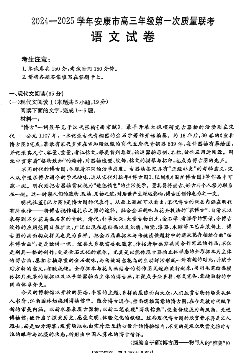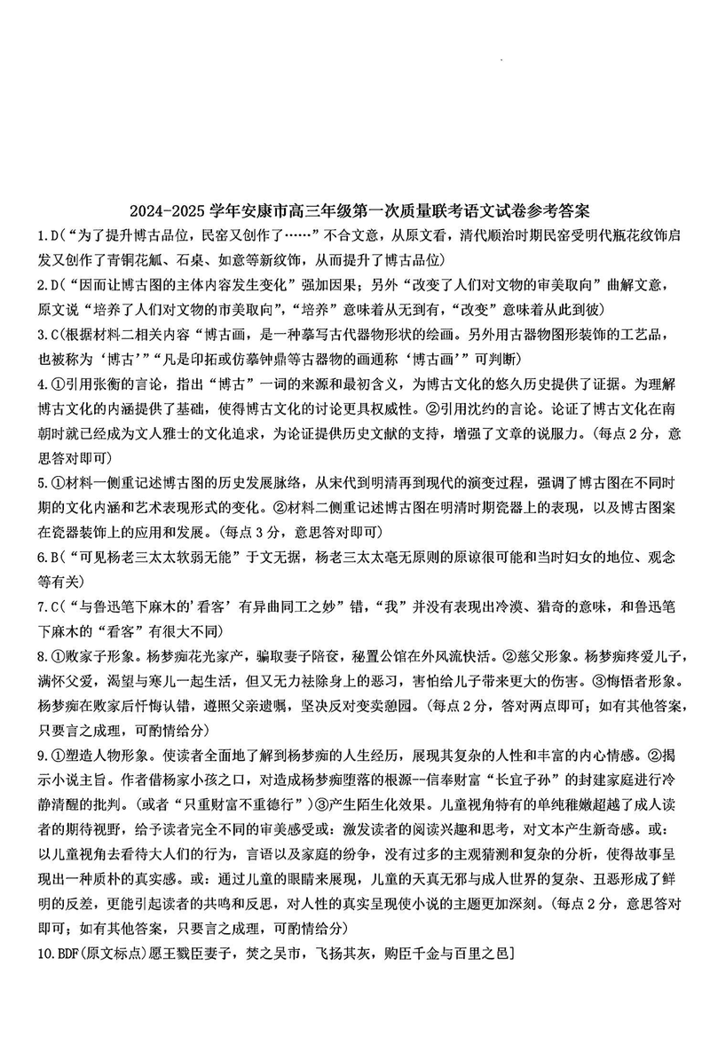 陕西安康2025届高三上学期第一次质量联考语文考试已于近日开考,为方便考生考后及时查看考试情况,查漏补缺、弥补不足,本文整理了试题答案解析相关信息!