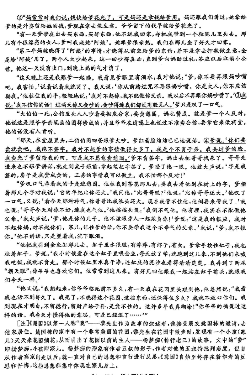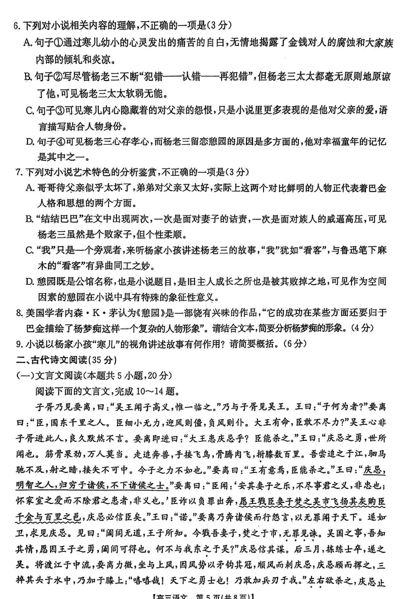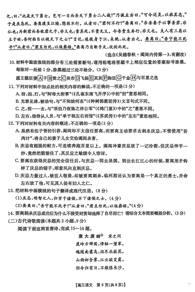 陕西安康2025届高三上学期第一次质量联考语文试题及答案