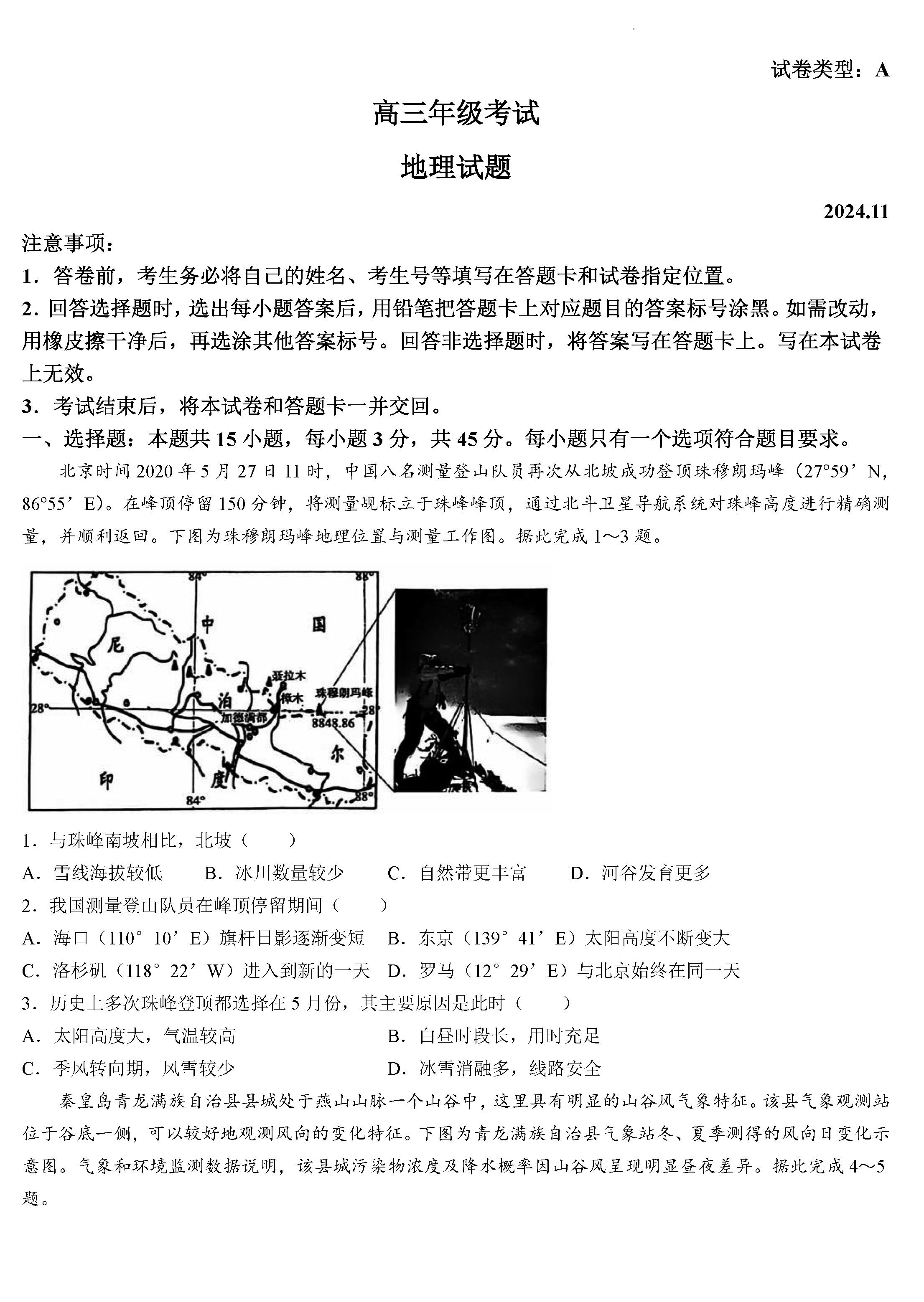 山东泰安2025届高三上学期11月期中地理试题及答案 时间:2024-11-24 23:26 山东 文综试题 山东泰安2025届高三上学期11月期中地理考试已于近日开考,为方便考生考后及时查看考试情况,查漏补缺、弥补不足,本文整理了试题答案解析相关信息! 汇总:山东泰安2025届高三上学期11月期中试题及答案汇总 地理试题及答案解析