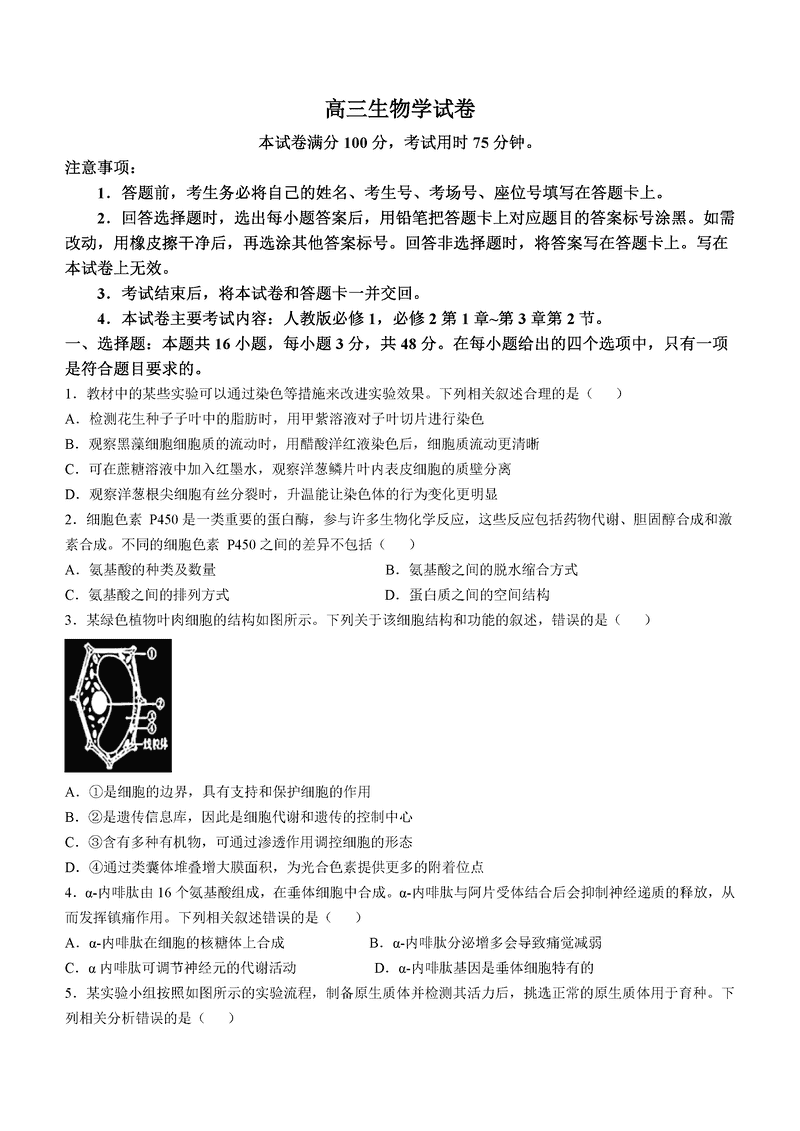 青海省金太阳2025届高三上学期11月联考生物试题及答案