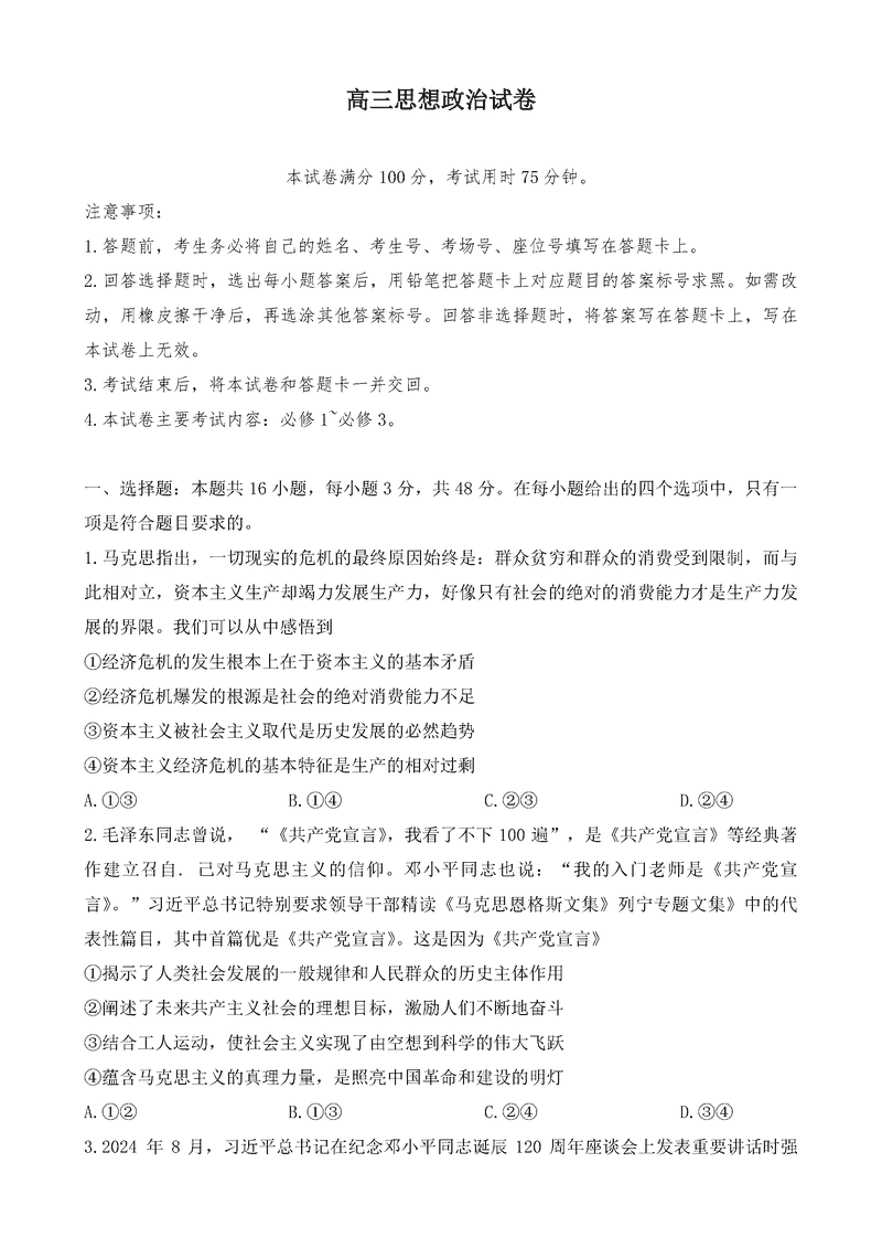 青海省金太阳2025届高三上学期11月联考政治试题及答案