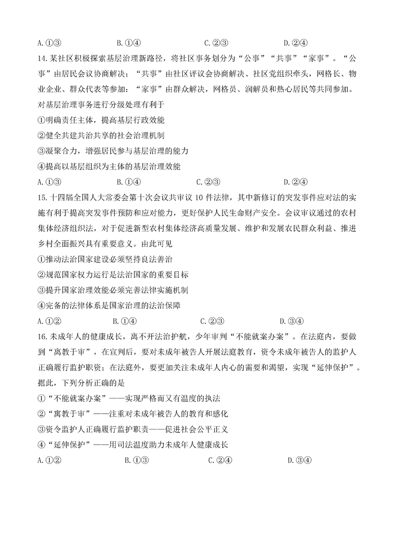 政治试题及答案解析
