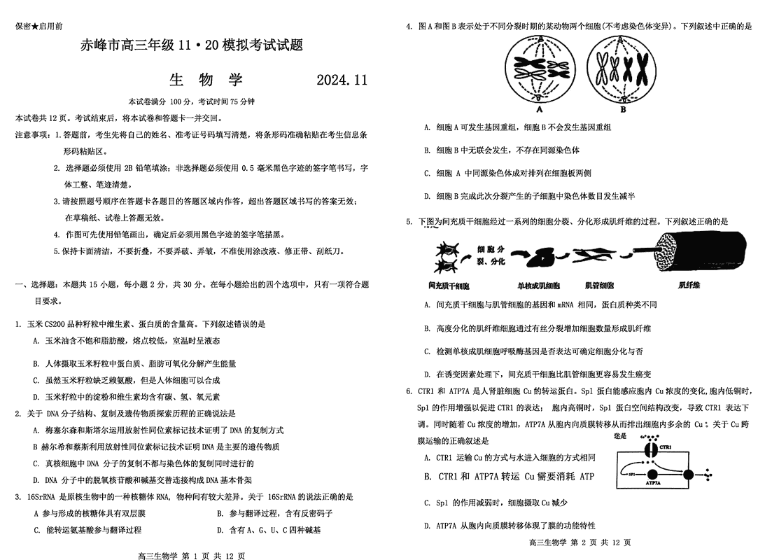 内蒙古赤峰市2024年11.20高三模拟生物考试已于近日开考,为方便考生考后及时查看考试情况,查漏补缺、弥补不足,本文整理了试题答案解析相关信息!
