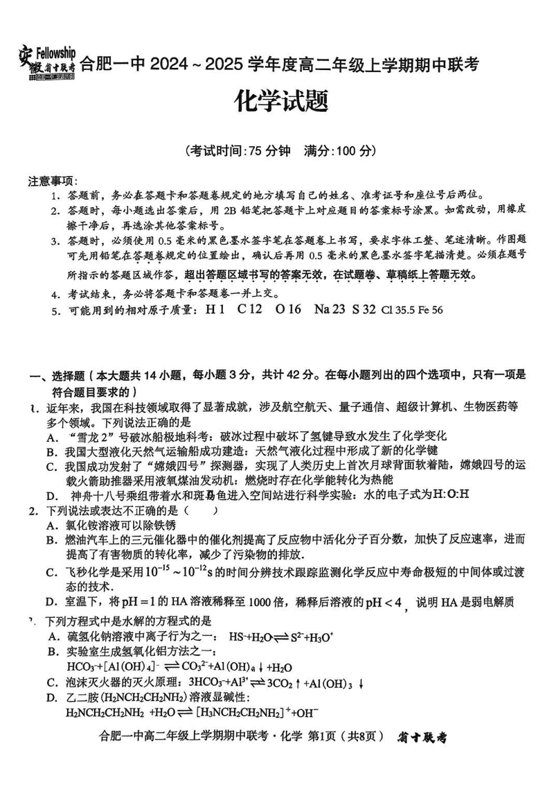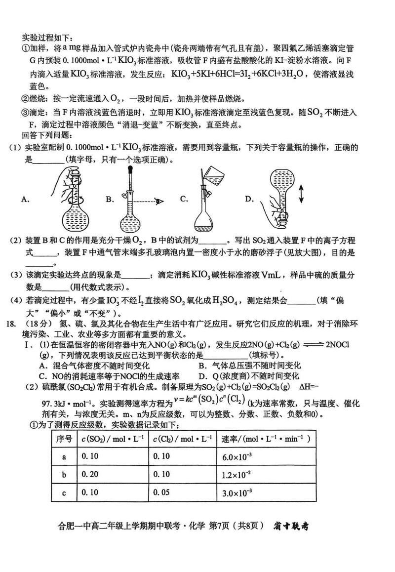 安徽省十联考合肥一中2024年11月高二期中化学试题及答案 时间:2024-11-25 16:15 安徽 高中化学 安徽省十联考合肥一中2024年11月高二期中化学考试已于近日开考,为方便考生考后及时查看考试情况,查漏补缺、弥补不足,本文整理了试题答案解析相关信息! 化学试题及答案解析