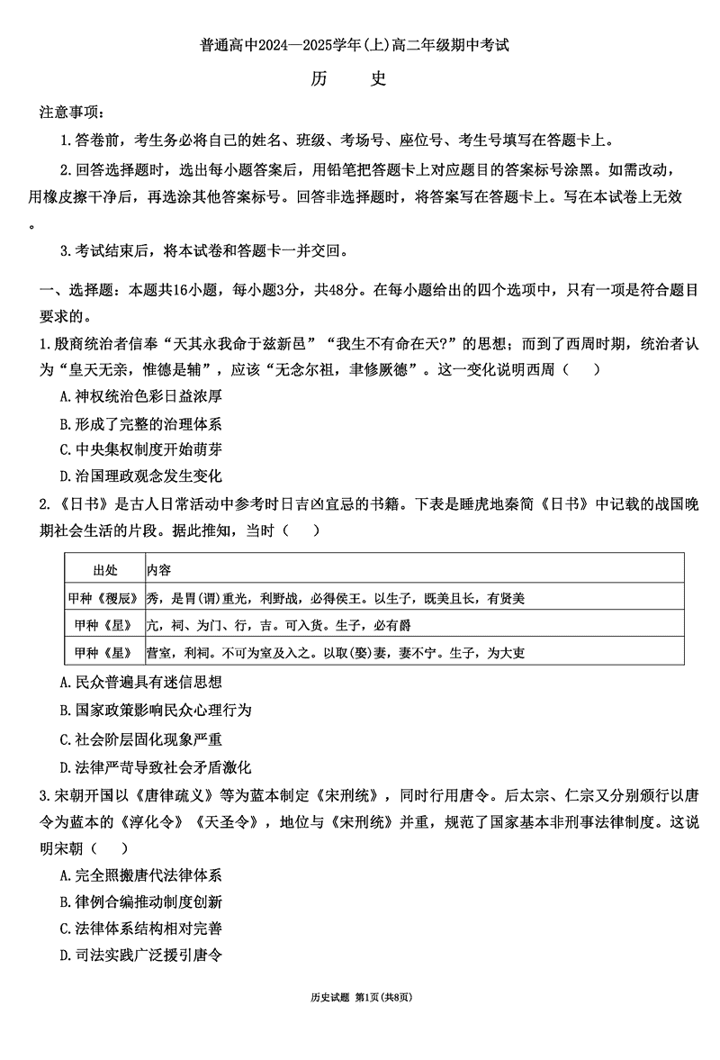 河南青桐鸣2024-2025学年高二上学期期中历史试题及答案 时间:2024-11-25 16:49 河南 高中历史 河南青桐鸣2024-2025学年高二上学期期中历史考试已于近日开考,为方便考生考后及时查看考试情况,查漏补缺、弥补不足,本文整理了试题答案解析相关信息! 历史试题及答案解析