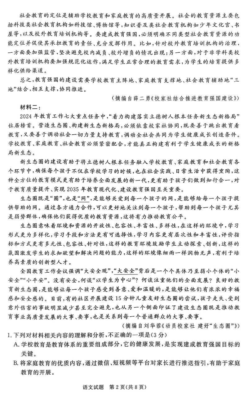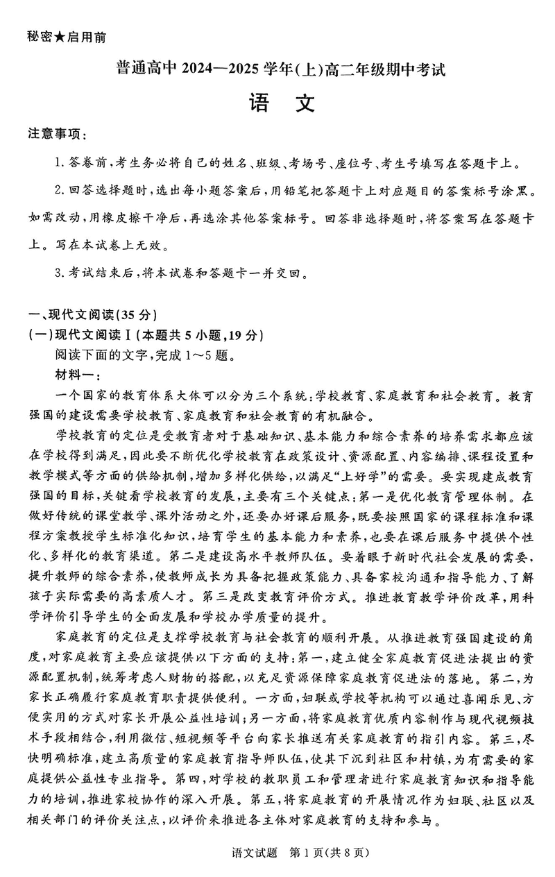河南青桐鸣2024-2025学年高二上学期期中语文试题及答案 时间:2024-11-25 16:51 河南 高中语文 河南青桐鸣2024-2025学年高二上学期期中语文考试已于近日开考,为方便考生考后及时查看考试情况,查漏补缺、弥补不足,本文整理了试题答案解析相关信息! 语文试题及答案解析