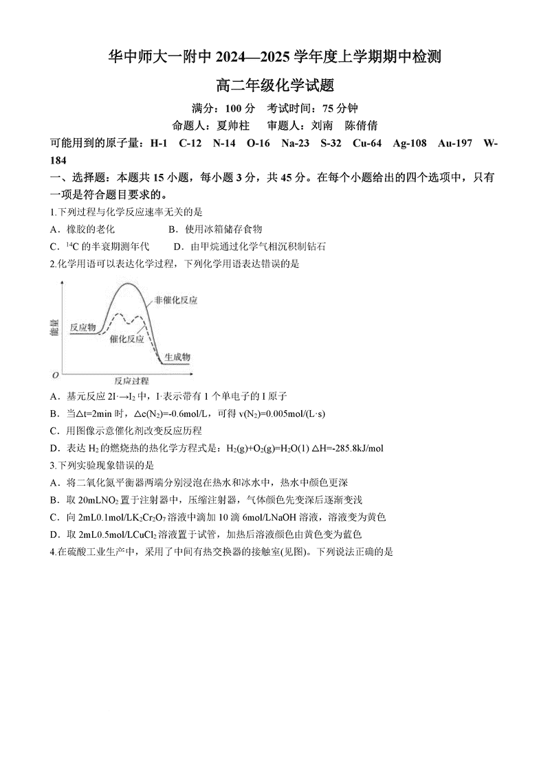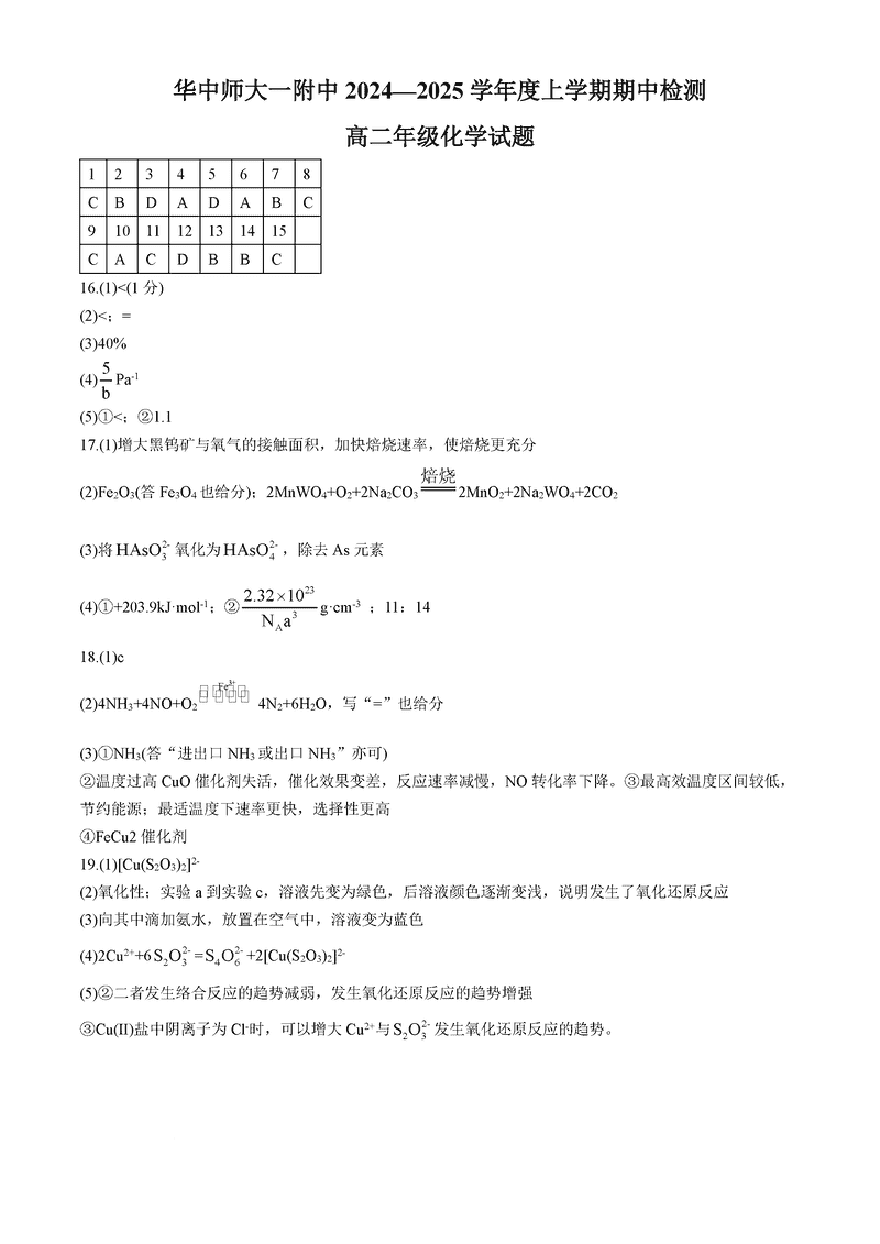 2025武汉华中师大一附中高二上学期期中检测化学试题及答案 时间:2024-11-25 17:19 湖北 高中化学 2025武汉华中师大一附中高二上学期期中检测化学考试已于近日开考,为方便考生考后及时查看考试情况,查漏补缺、弥补不足,本文整理了试题答案解析相关信息! 化学试题及答案解析
