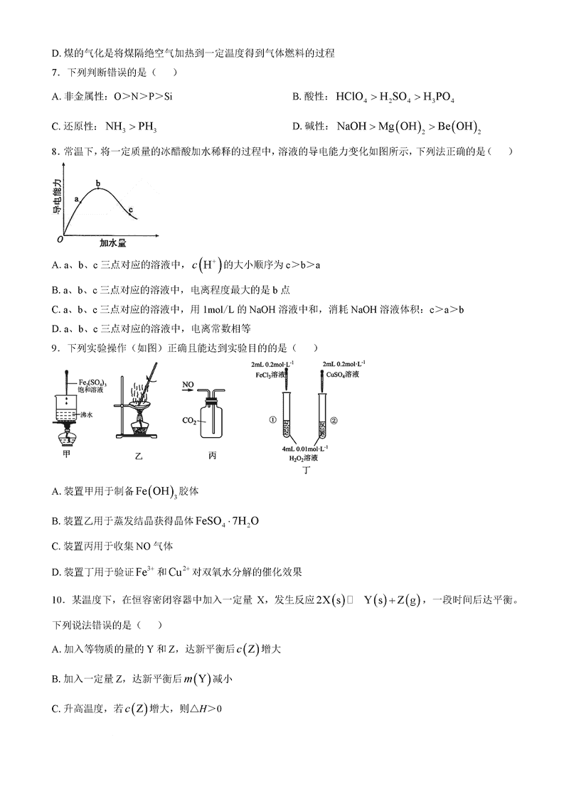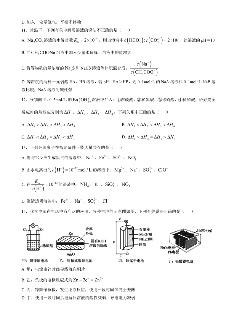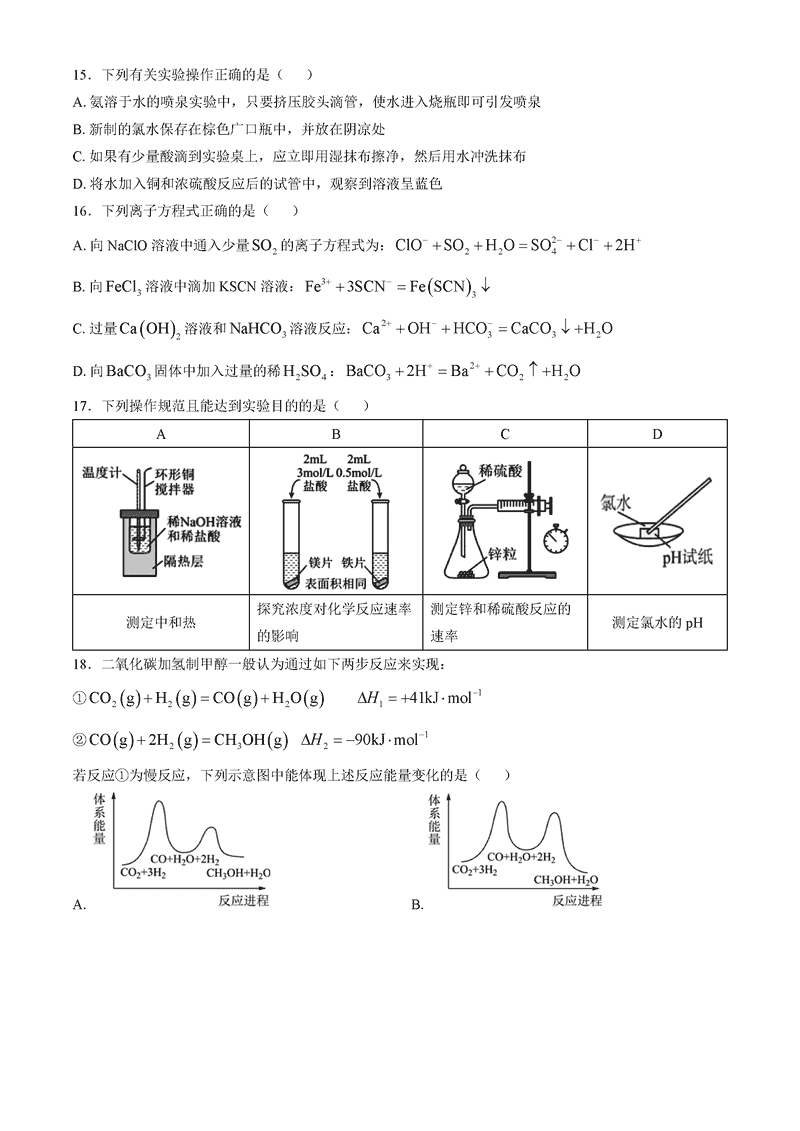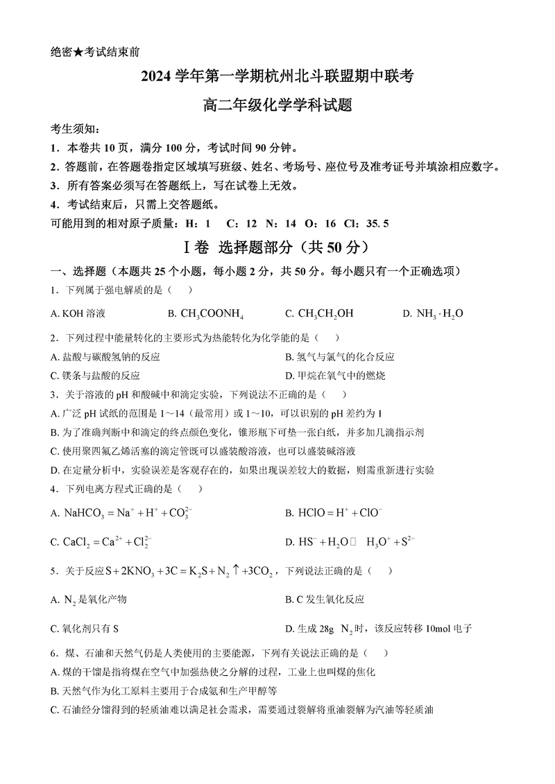 浙江杭州北斗联盟2024年11月高二期中联考化学试题及答案 时间:2024-11-25 17:22 浙江 高中化学 浙江杭州北斗联盟2024年11月高二期中联考化学考试已于近日开考,为方便考生考后及时查看考试情况,查漏补缺、弥补不足,本文整理了试题答案解析相关信息! 化学试题及答案解析