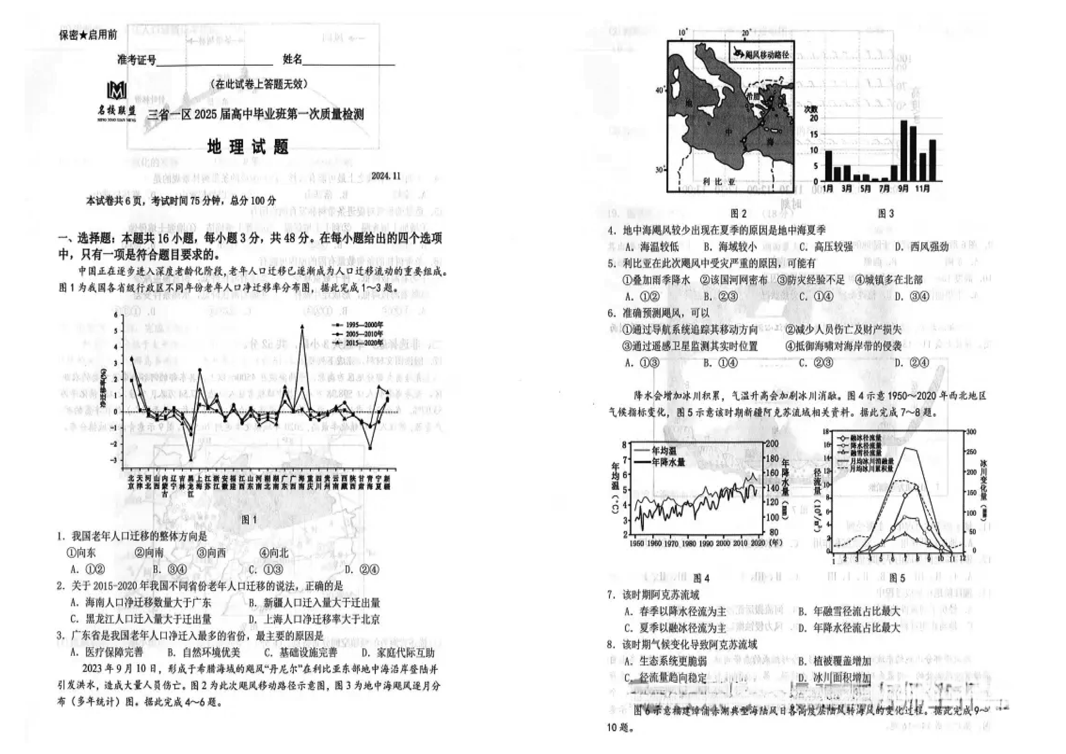 2025届东北三省一区名校联盟高三11月第一次质检地理试题及答案