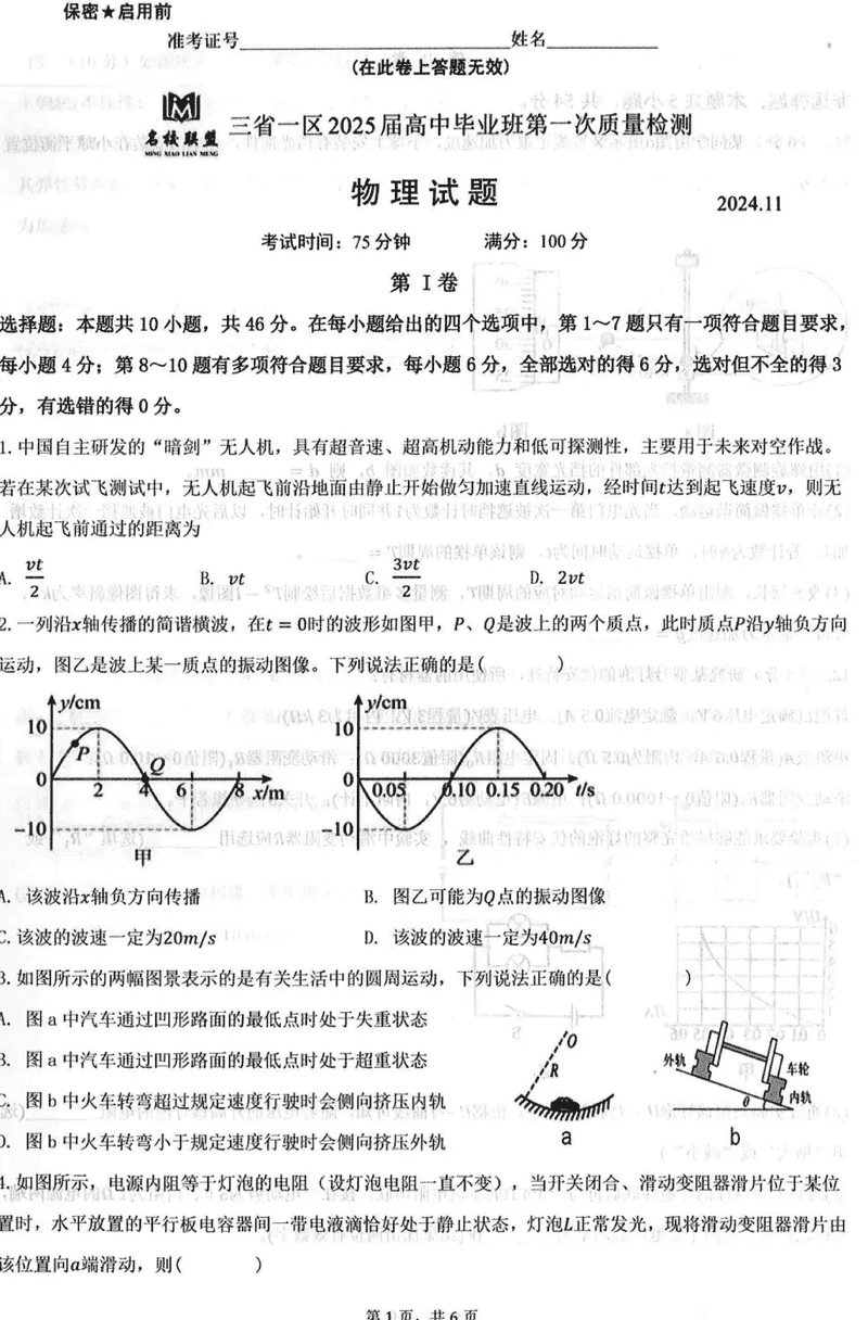 2025届东北三省一区名校联盟高三11月第一次质检物理考试已于近日开考,为方便考生考后及时查看考试情况,查漏补缺、弥补不足,本文整理了试题答案解析相关信息!