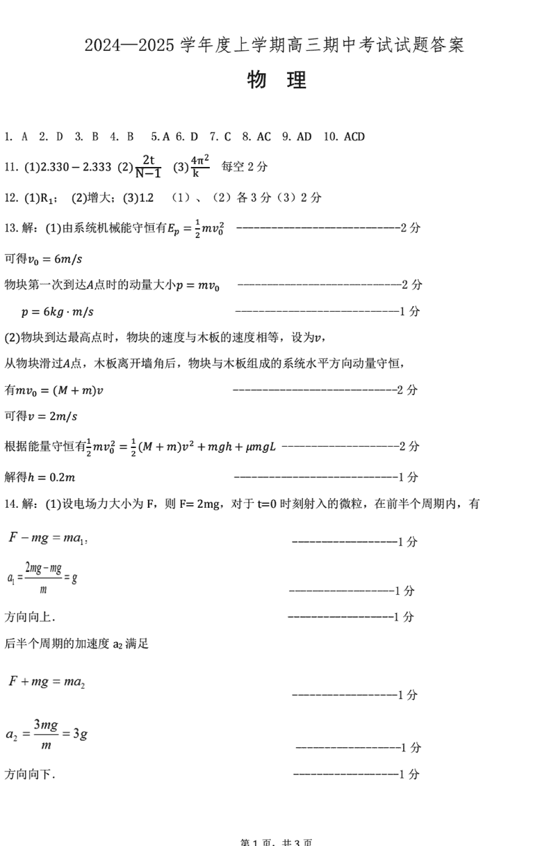 2025届东北三省一区名校联盟高三11月第一次质检物理试题及答案