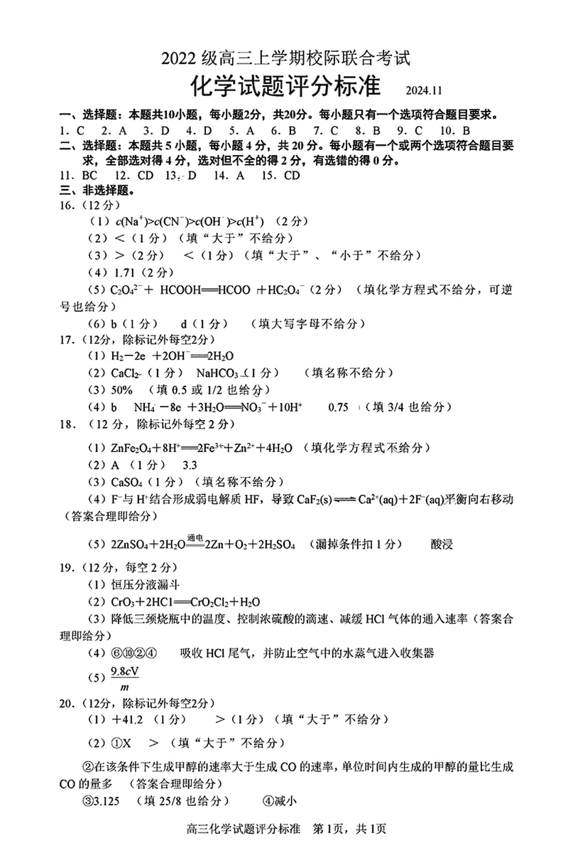 山东日照2025届高三上学期11月期中校际联考化学考试已于近日开考,为方便考生考后及时查看考试情况,查漏补缺、弥补不足,本文整理了试题答案解析相关信息!