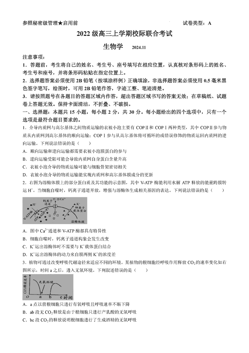 山东日照2025届高三上学期11月期中校际联考生物试题及答案