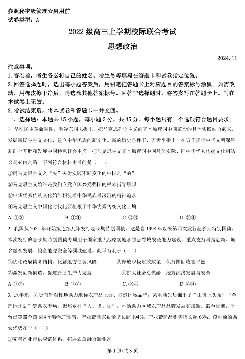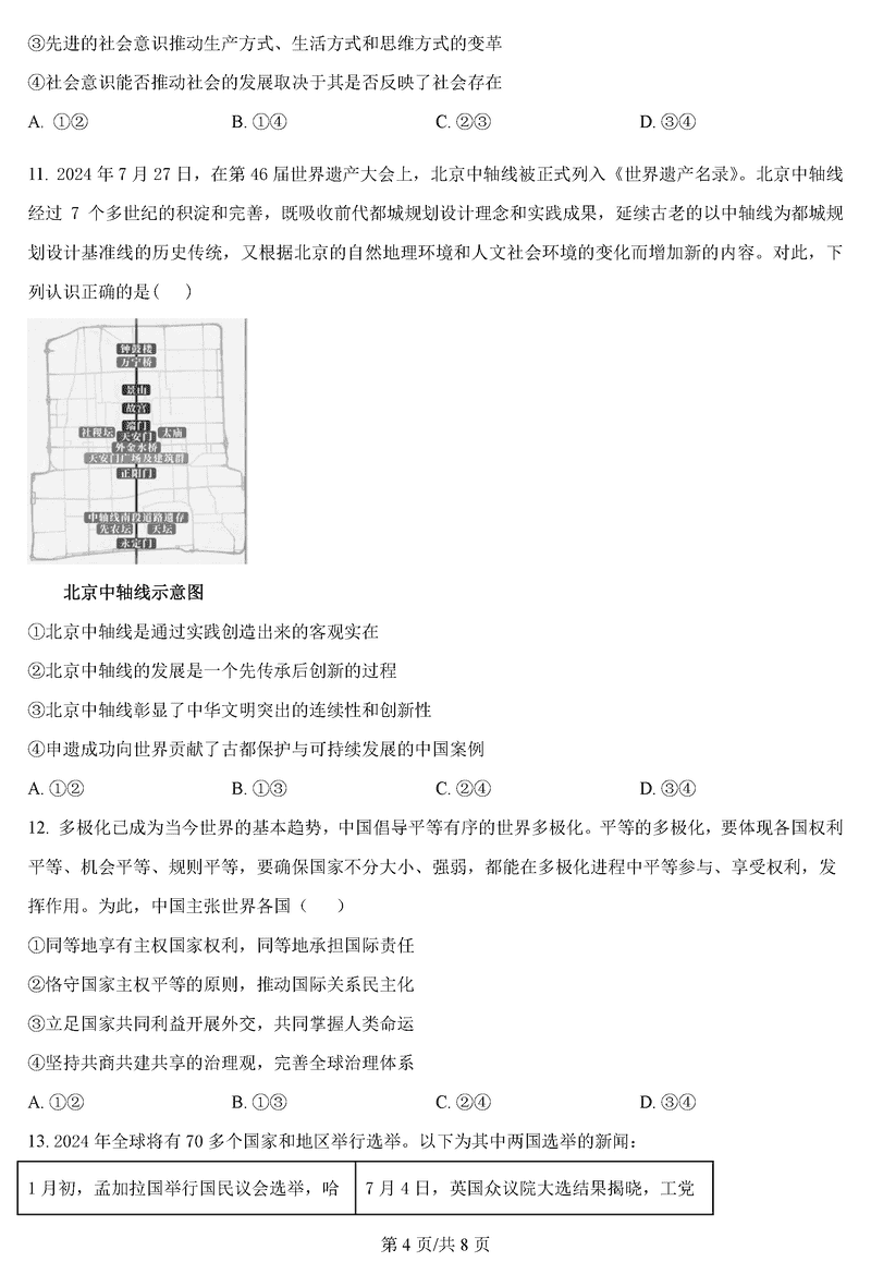 山东日照2025届高三上学期11月期中校际联考政治试题及答案