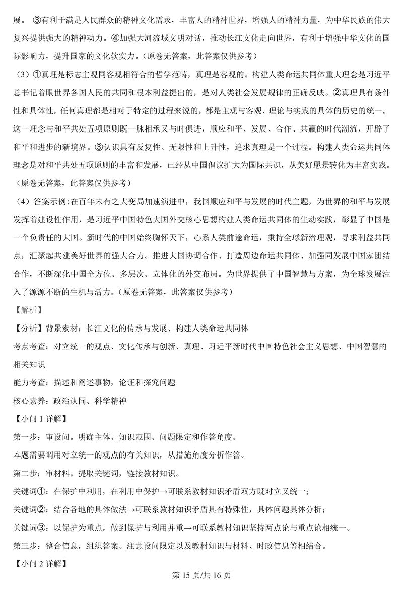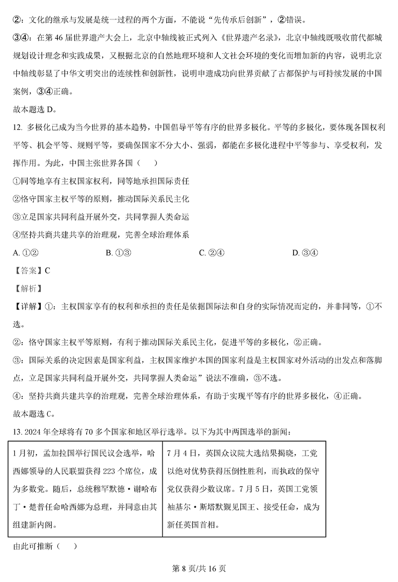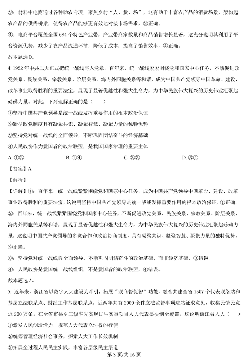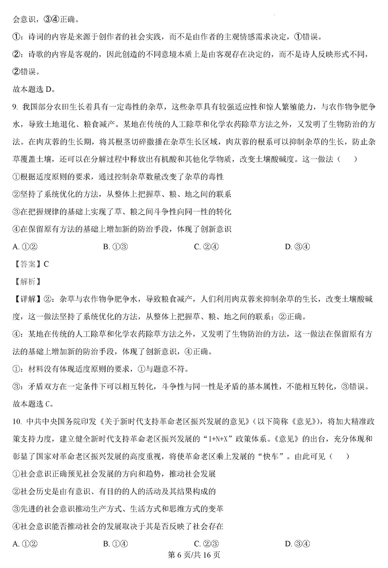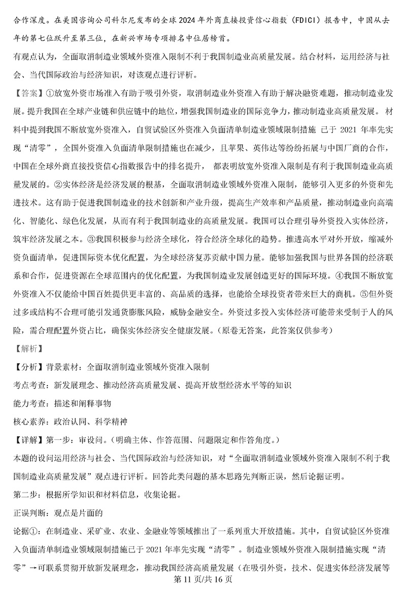政治试题及答案解析