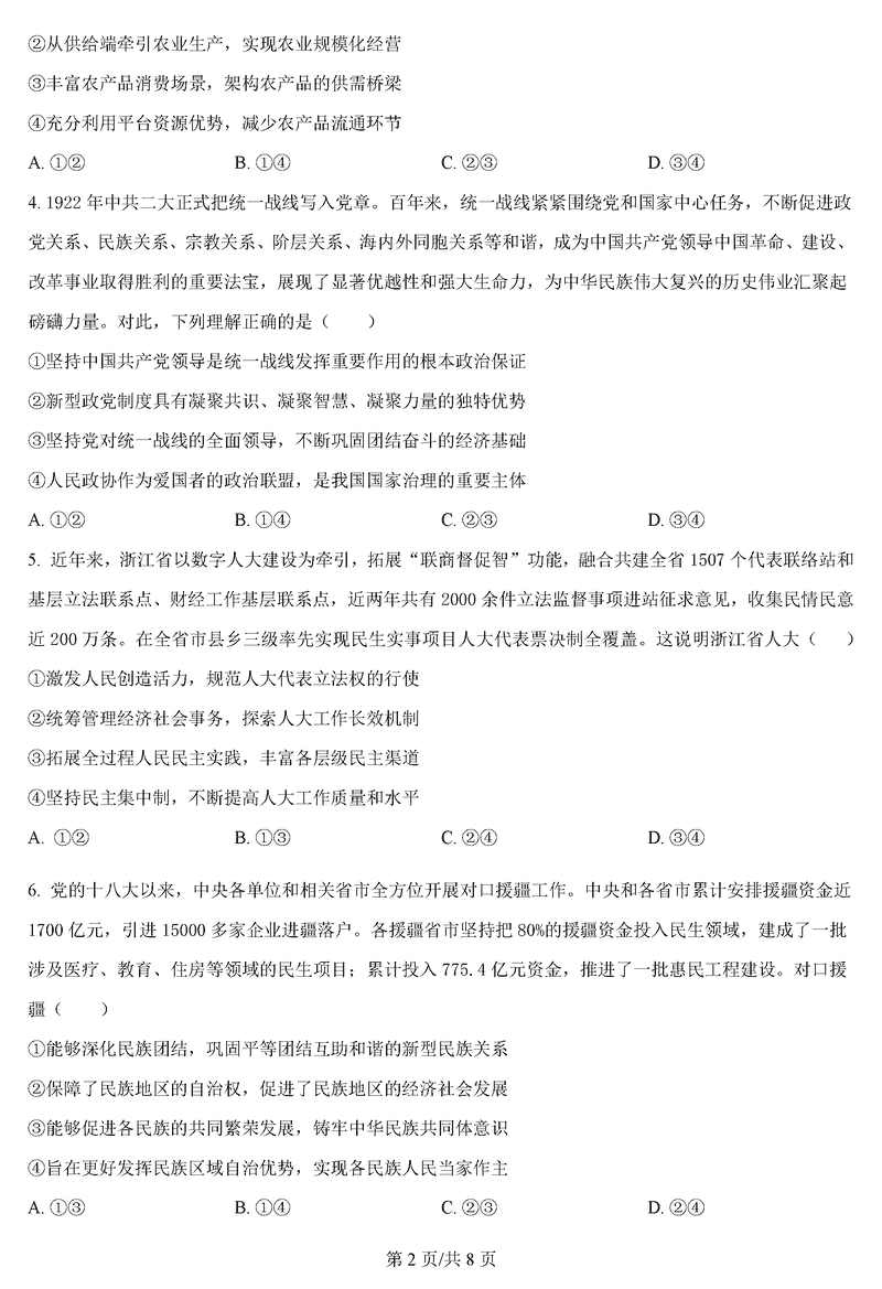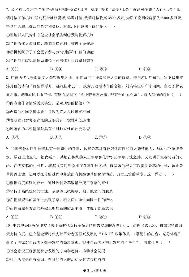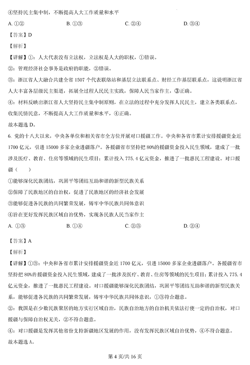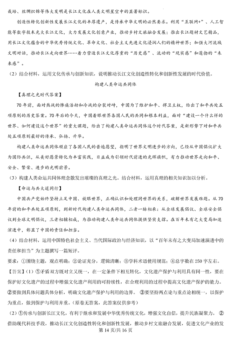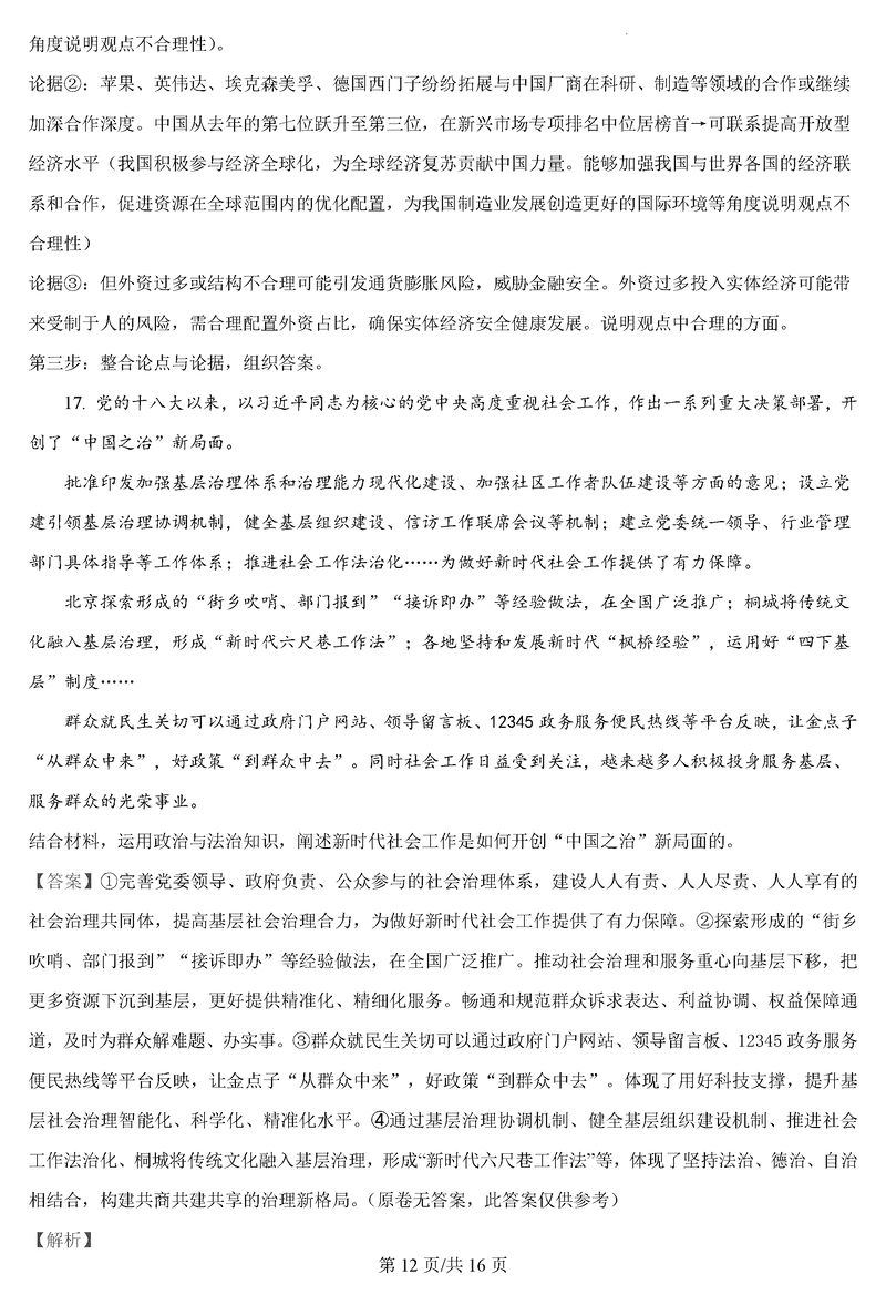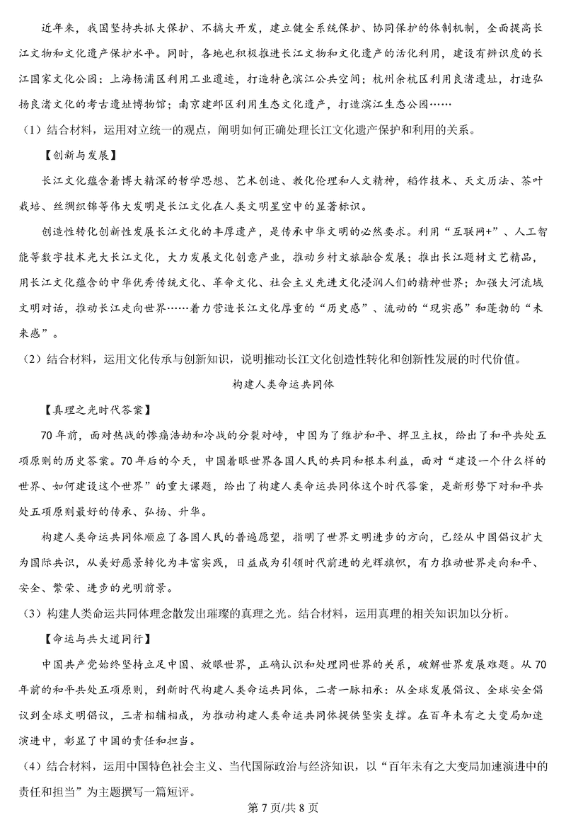 政治试题及答案解析