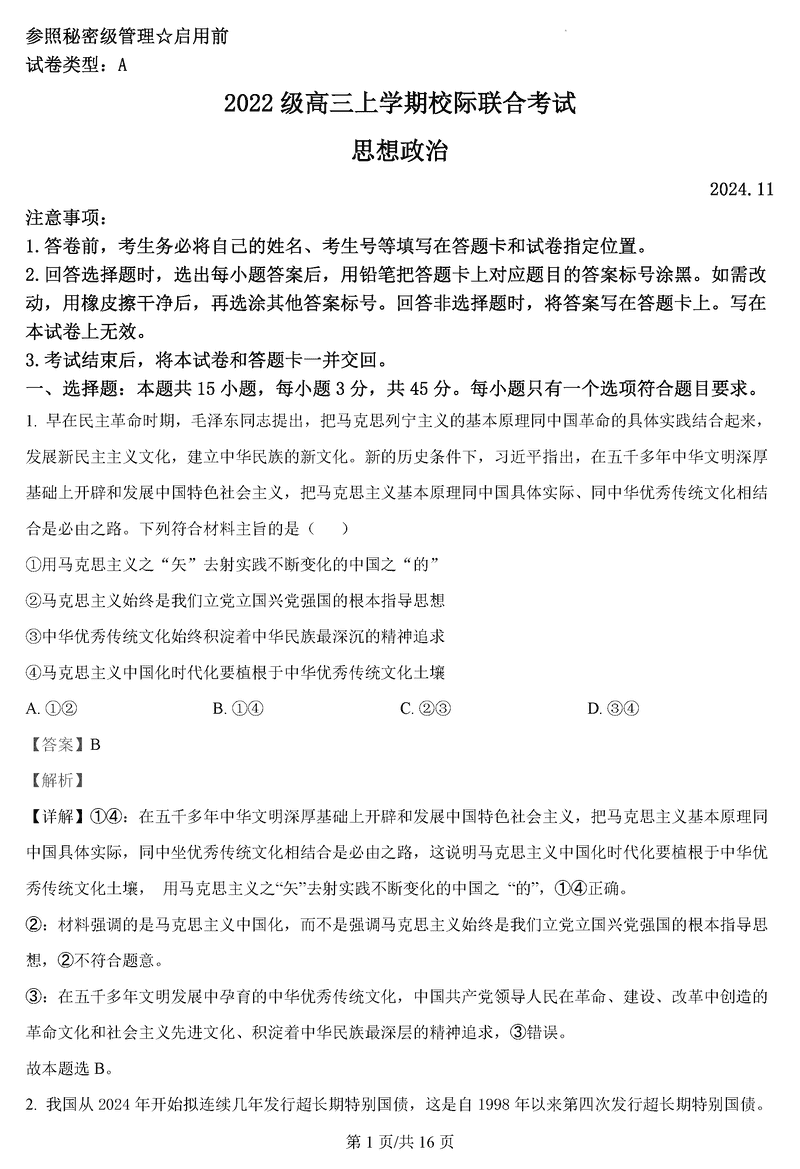山东日照2025届高三上学期11月期中校际联考政治考试已于近日开考,为方便考生考后及时查看考试情况,查漏补缺、弥补不足,本文整理了试题答案解析相关信息!