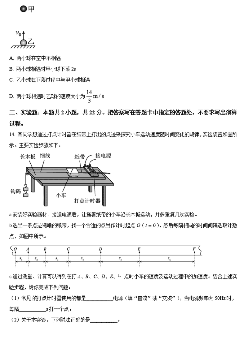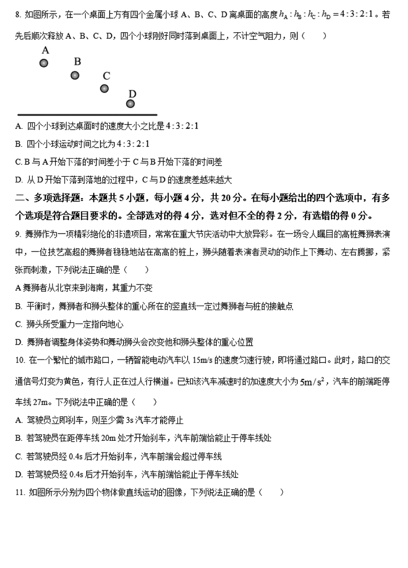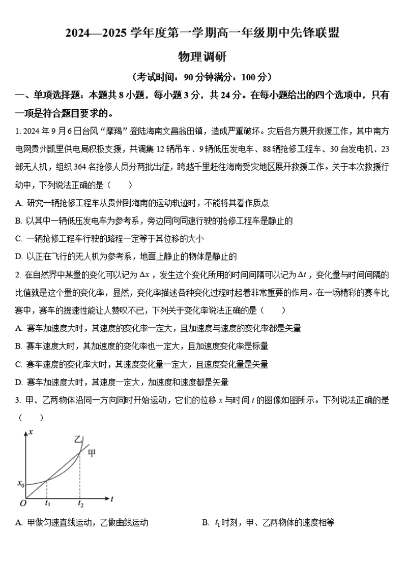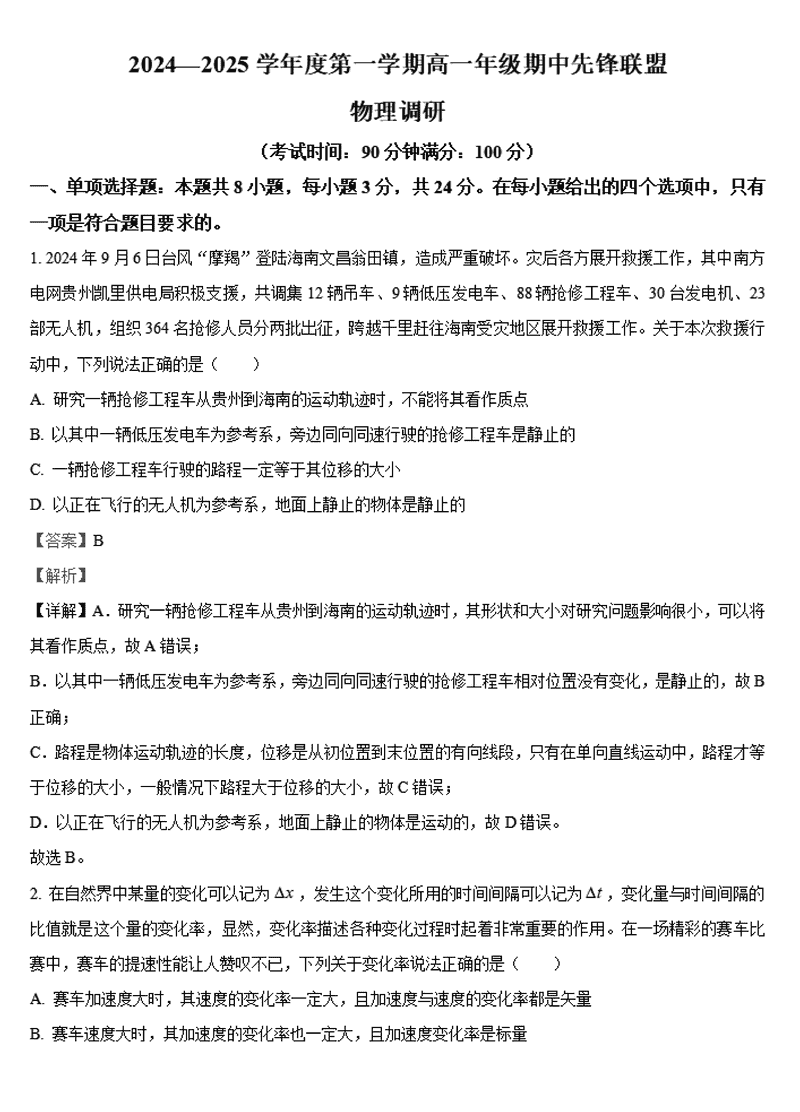 海南先锋联盟2024-2025学年高一上学期11月期中物理试题及答案 时间:2024-11-26 21:35 海南 高中物理 海南省先锋联盟2024-2025学年高一上学期11月期中物理考试已于近日开考,为方便考生考后及时查看考试情况,查漏补缺、弥补不足,本文整理了试题答案解析相关信息! 物理试题及答案解析