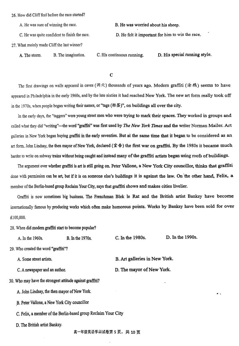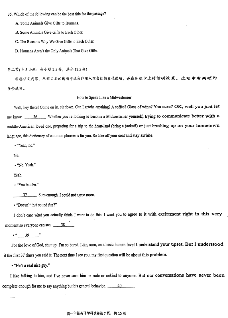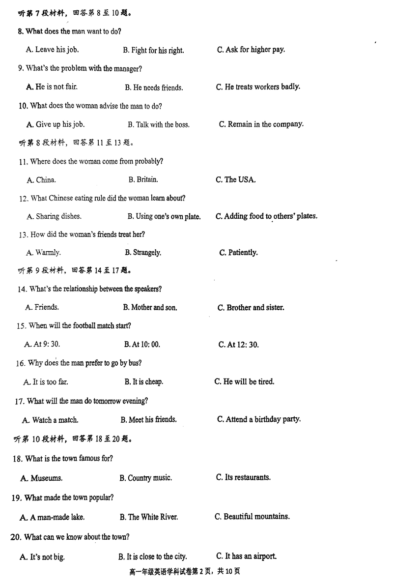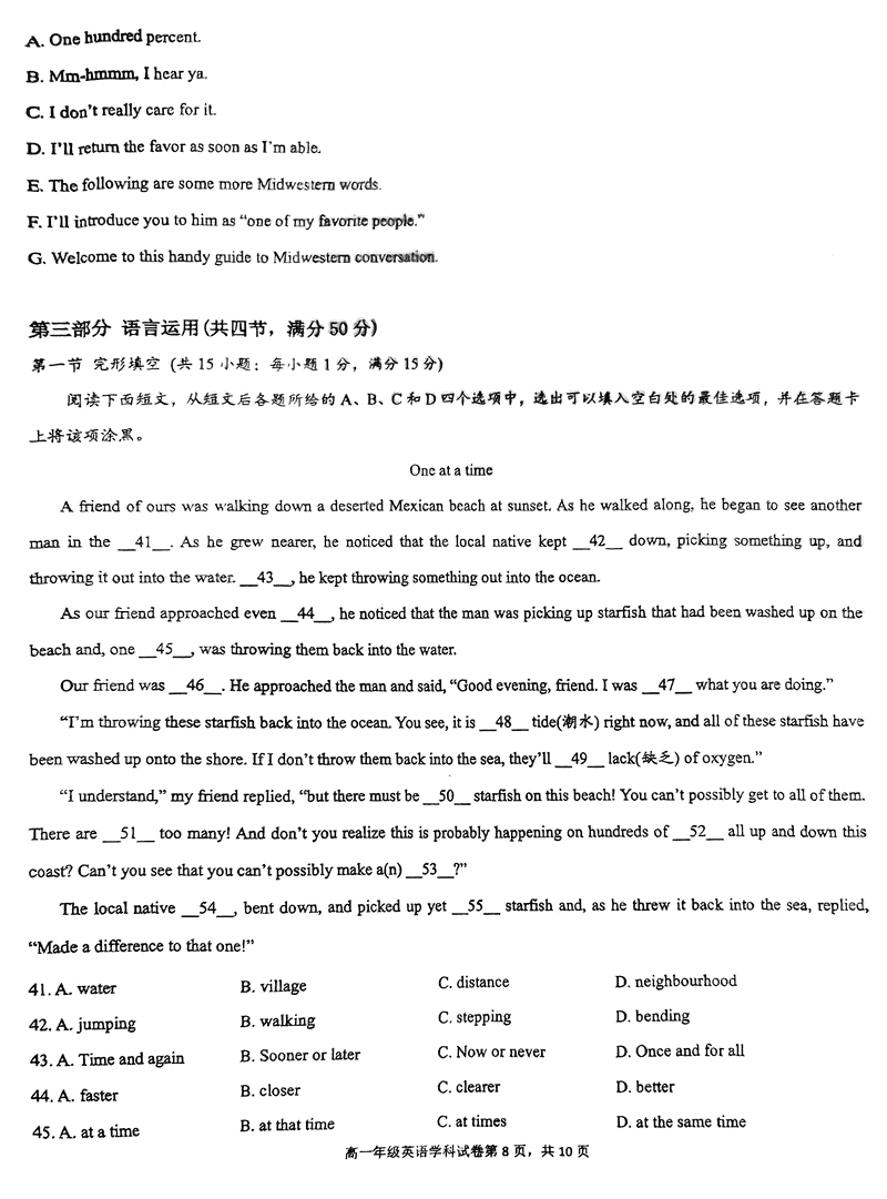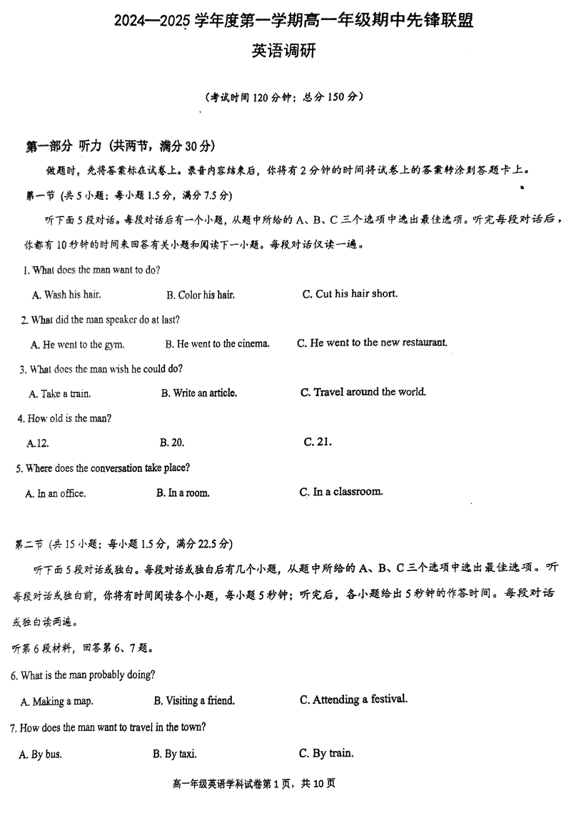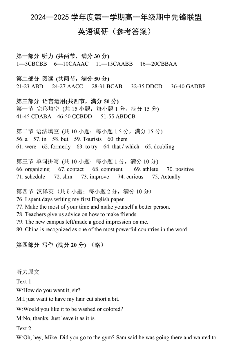 海南先锋联盟2024-2025学年高一上学期11月期中英语试题及答案 时间:2024-11-26 21:35 海南 高中英语 海南省先锋联盟2024-2025学年高一上学期11月期中英语考试已于近日开考,为方便考生考后及时查看考试情况,查漏补缺、弥补不足,本文整理了试题答案解析相关信息! 英语试题及答案解析