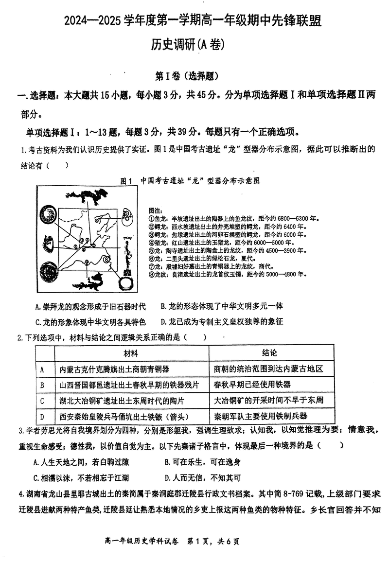 海南先锋联盟2024-2025学年高一上学期11月期中历史试题及答案 时间:2024-11-26 21:36 海南 高中历史 海南省先锋联盟2024-2025学年高一上学期11月期中历史考试已于近日开考,为方便考生考后及时查看考试情况,查漏补缺、弥补不足,本文整理了试题答案解析相关信息! 历史试题及答案解析