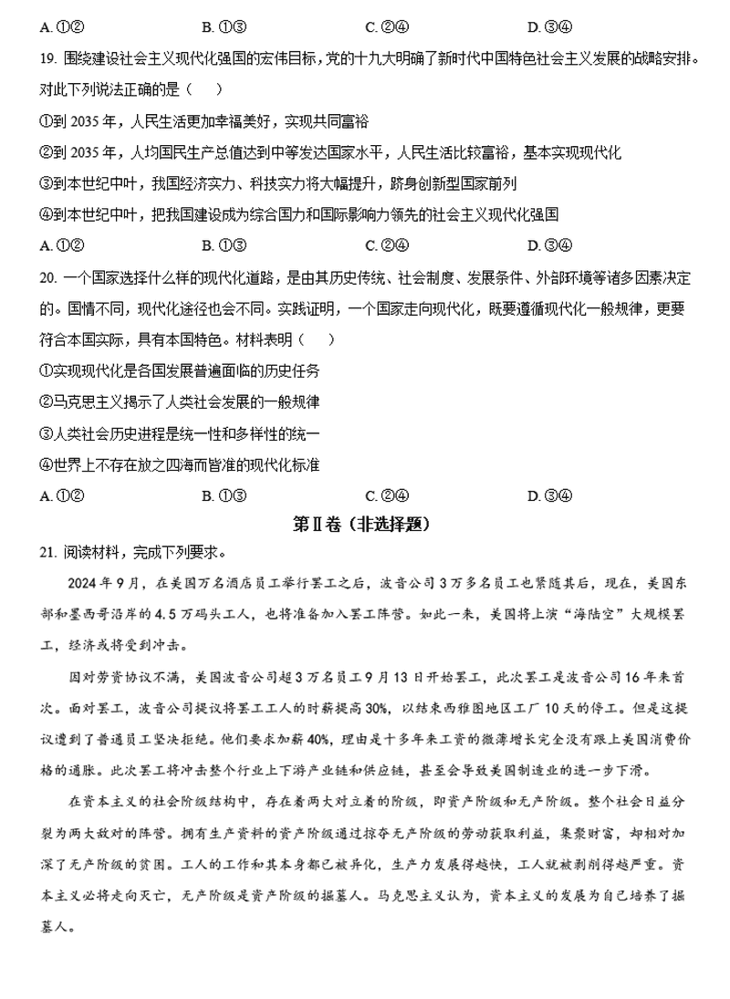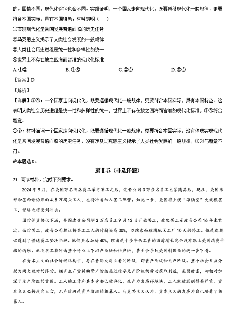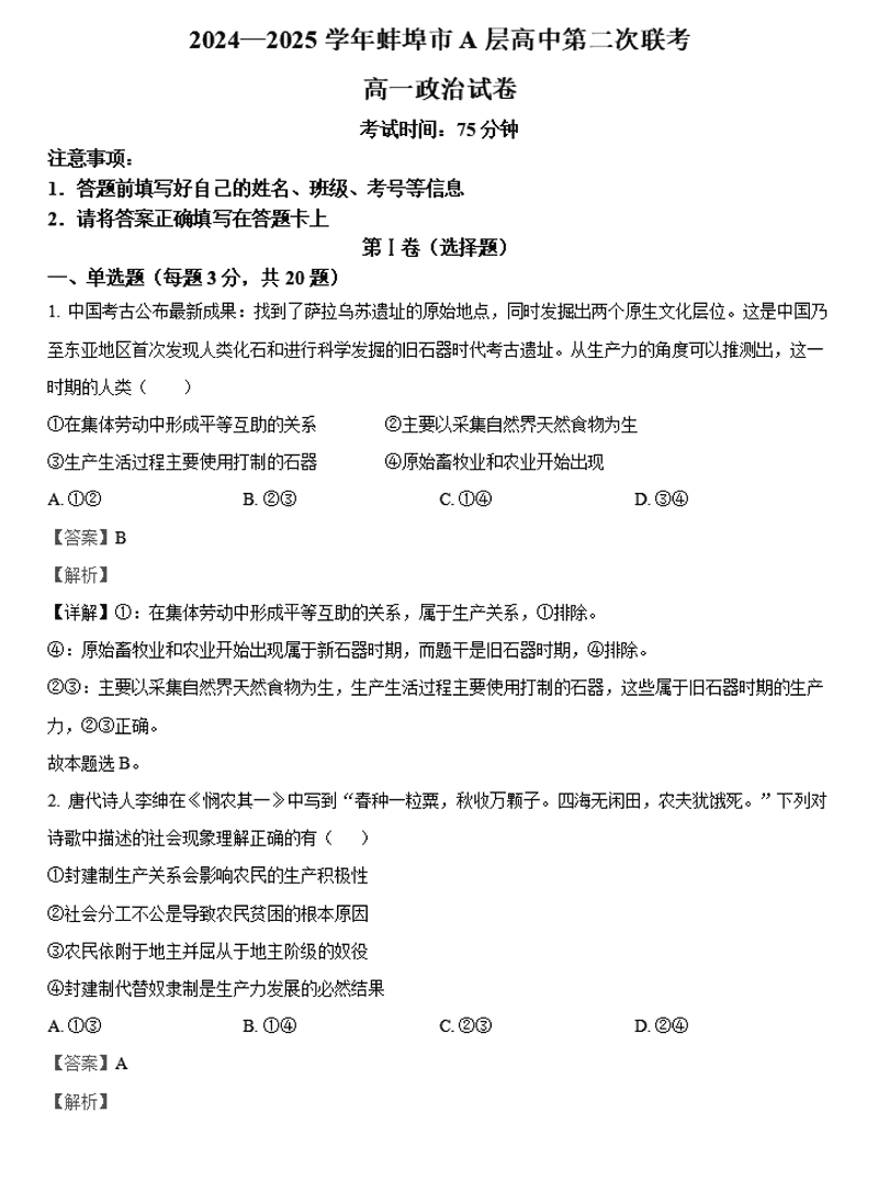蚌埠市A层高中2024年11月高一第二次联考政治试题及答案 时间:2024-11-26 21:45 安徽 高中政治 安徽省蚌埠市A层高中2024-2025学年高一上学期11月期中政治考试已于近日开考,为方便考生考后及时查看考试情况,查漏补缺、弥补不足,本文整理了试题答案解析相关信息! 政治试题及答案解析