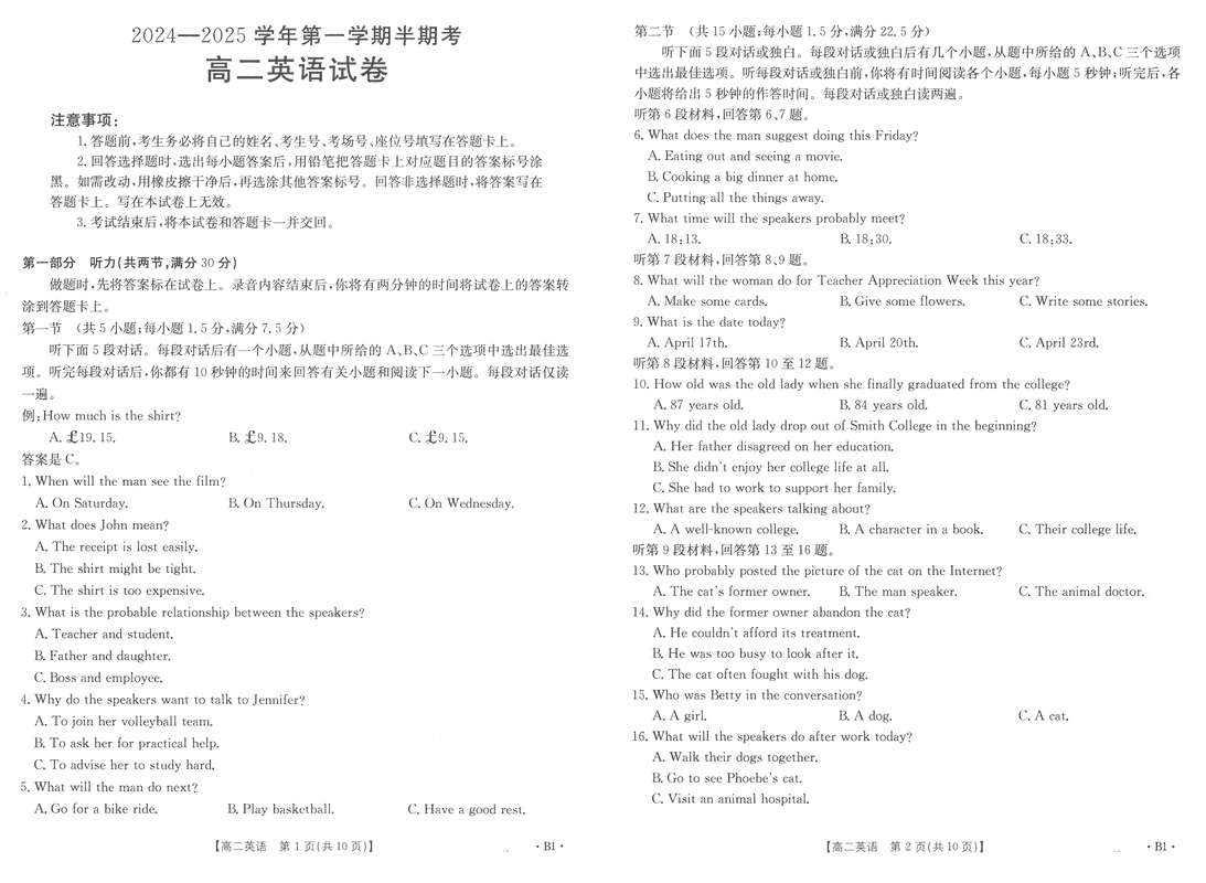 福建省非一级达标校2024年11月高二第一学期半期考英语试题及答案 时间:2024-11-26 21:55 福建 高中英语 福建省非一级达标校2024年11月高二第一学期半期考英语考试已于近日开考,为方便考生考后及时查看考试情况,查漏补缺、弥补不足,本文整理了试题答案解析相关信息! 英语试题及答案解析