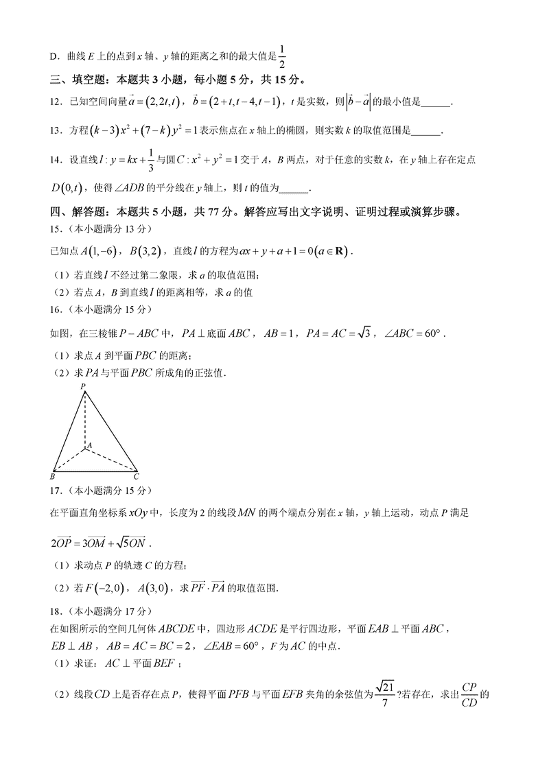 贵州九师联盟2024-2025学年高二上学期11月联考数学试题及答案 时间:2024-11-26 22:00 贵州 高中数学 贵州省九师联盟2024-2025学年高二上学期11月联考数学考试已于近日开考,为方便考生考后及时查看考试情况,查漏补缺、弥补不足,本文整理了试题答案解析相关信息! 数学试题及答案解析