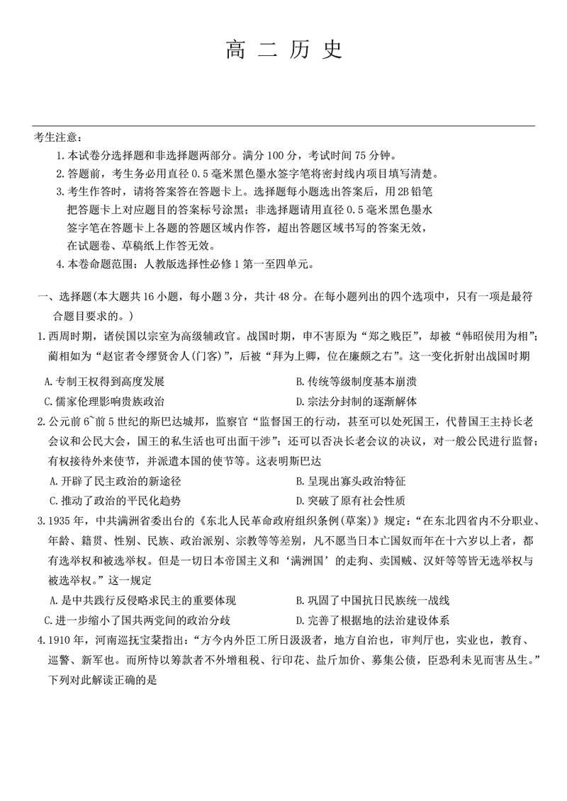 贵州九师联盟2024-2025学年高二上学期11月联考历史试题及答案 时间:2024-11-26 22:01 贵州 高中历史 贵州省九师联盟2024-2025学年高二上学期11月联考历史考试已于近日开考,为方便考生考后及时查看考试情况,查漏补缺、弥补不足,本文整理了试题答案解析相关信息! 历史试题及答案解析
