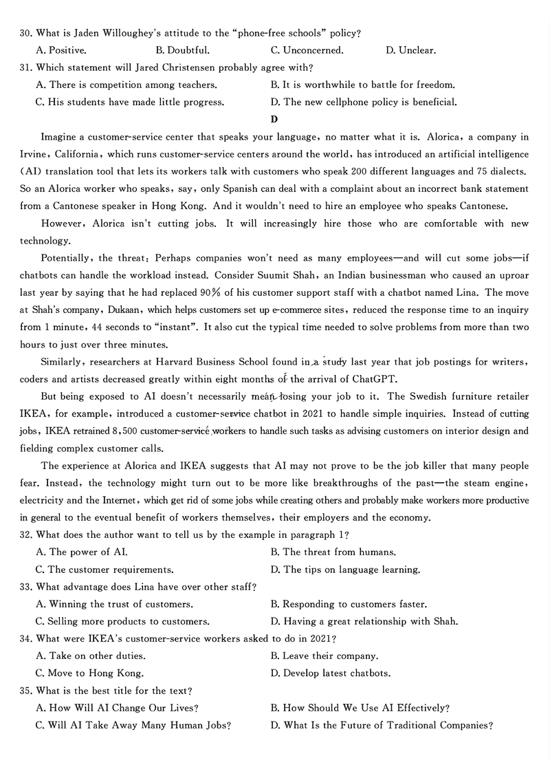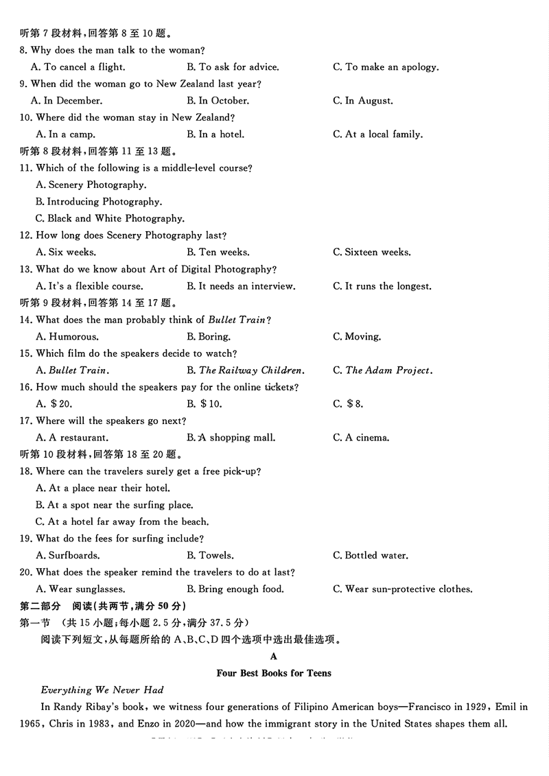 贵州九师联盟2024-2025学年高二上学期11月联考英语试题及答案 时间:2024-11-26 22:01 贵州 高中英语 贵州省九师联盟2024-2025学年高二上学期11月联考英语考试已于近日开考,为方便考生考后及时查看考试情况,查漏补缺、弥补不足,本文整理了试题答案解析相关信息! 英语试题及答案解析