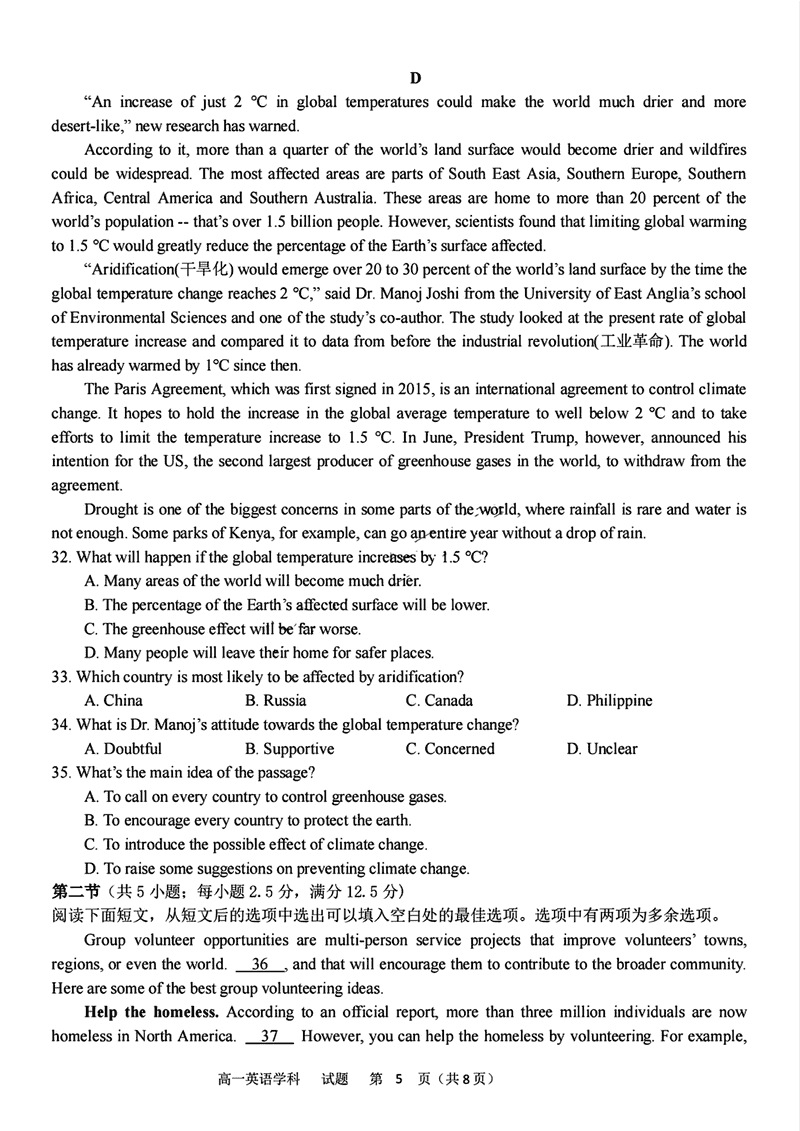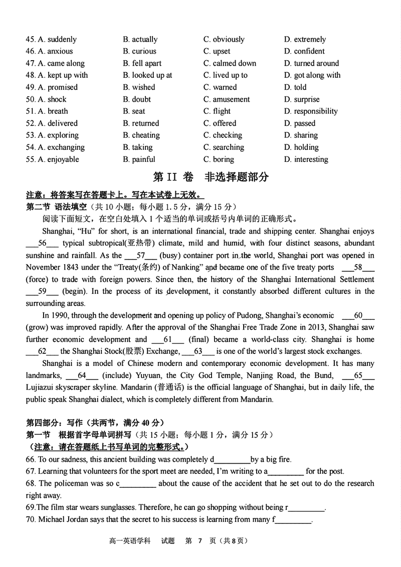 浙江省北斗联盟2024-2025学年高一11月期中联考英语试题及答案 时间:2024-11-26 22:07 浙江 高中英语 浙江省北斗联盟2024-2025学年高一11月期中联考英语考试已于近日开考,为方便考生考后及时查看考试情况,查漏补缺、弥补不足,本文整理了试题答案解析相关信息! 英语试题及答案解析