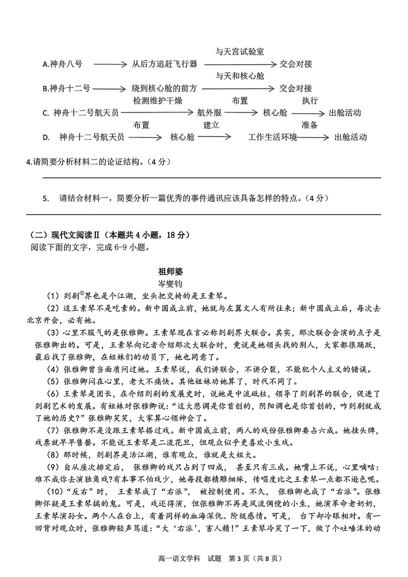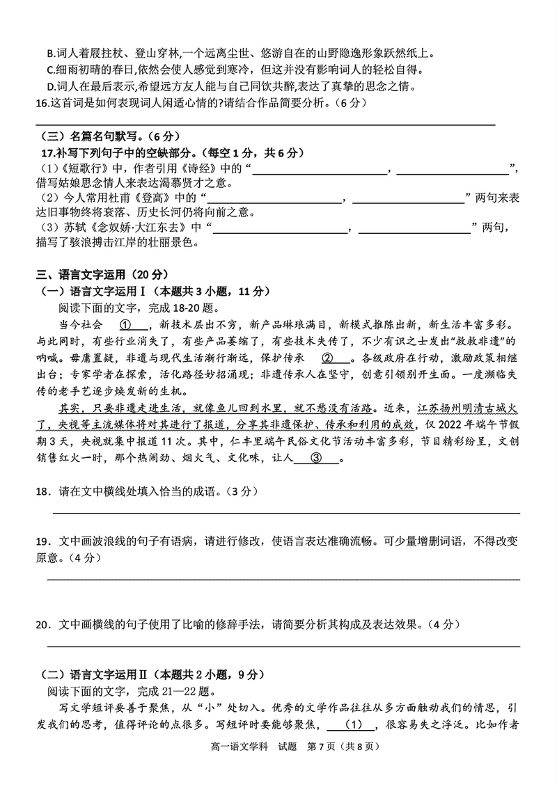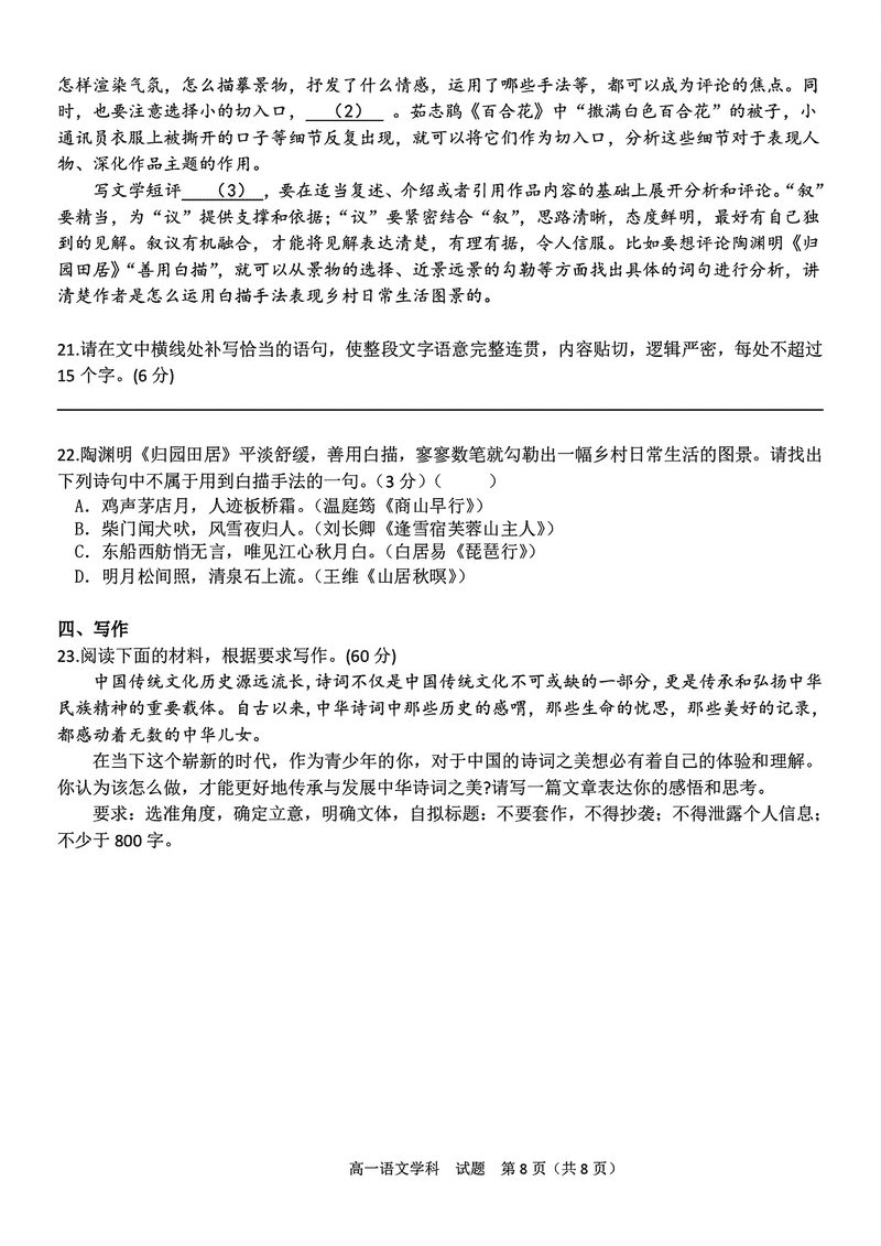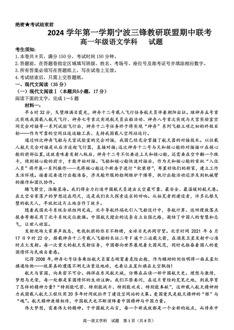 宁波三锋联盟2024年11月高一上学期期中语文试题及答案 时间:2024-11-26 22:15 浙江 高中语文 宁波市三锋联盟2024-2025学年高一上学期11月期中语文考试已于近日开考,为方便考生考后及时查看考试情况,查漏补缺、弥补不足,本文整理了试题答案解析相关信息! 语文试题及答案解析