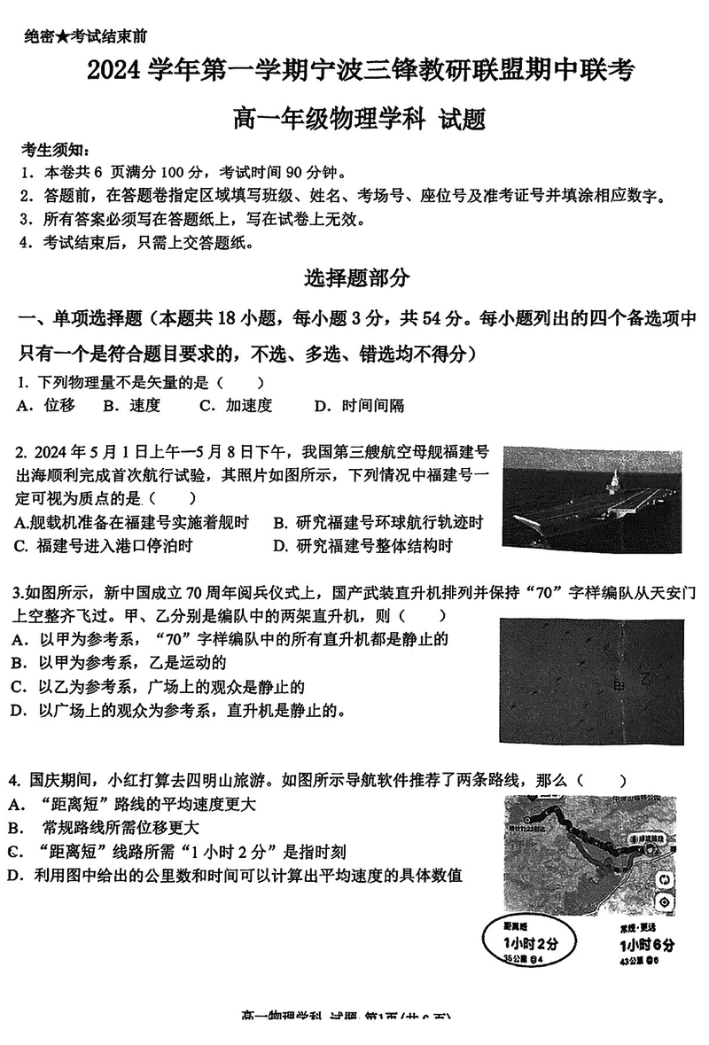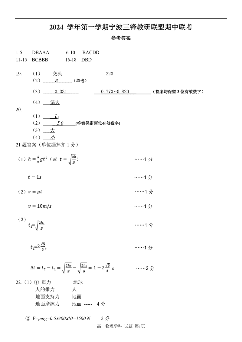 宁波三锋联盟2024年11月高一上学期期中物理试题及答案 时间:2024-11-26 22:18 浙江 高中物理 宁波市三锋联盟2024-2025学年高一上学期11月期中物理考试已于近日开考,为方便考生考后及时查看考试情况,查漏补缺、弥补不足,本文整理了试题答案解析相关信息! 物理试题及答案解析