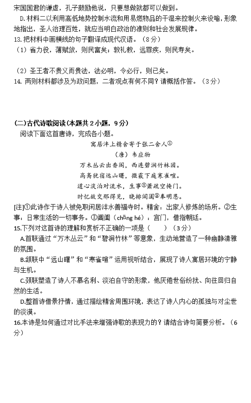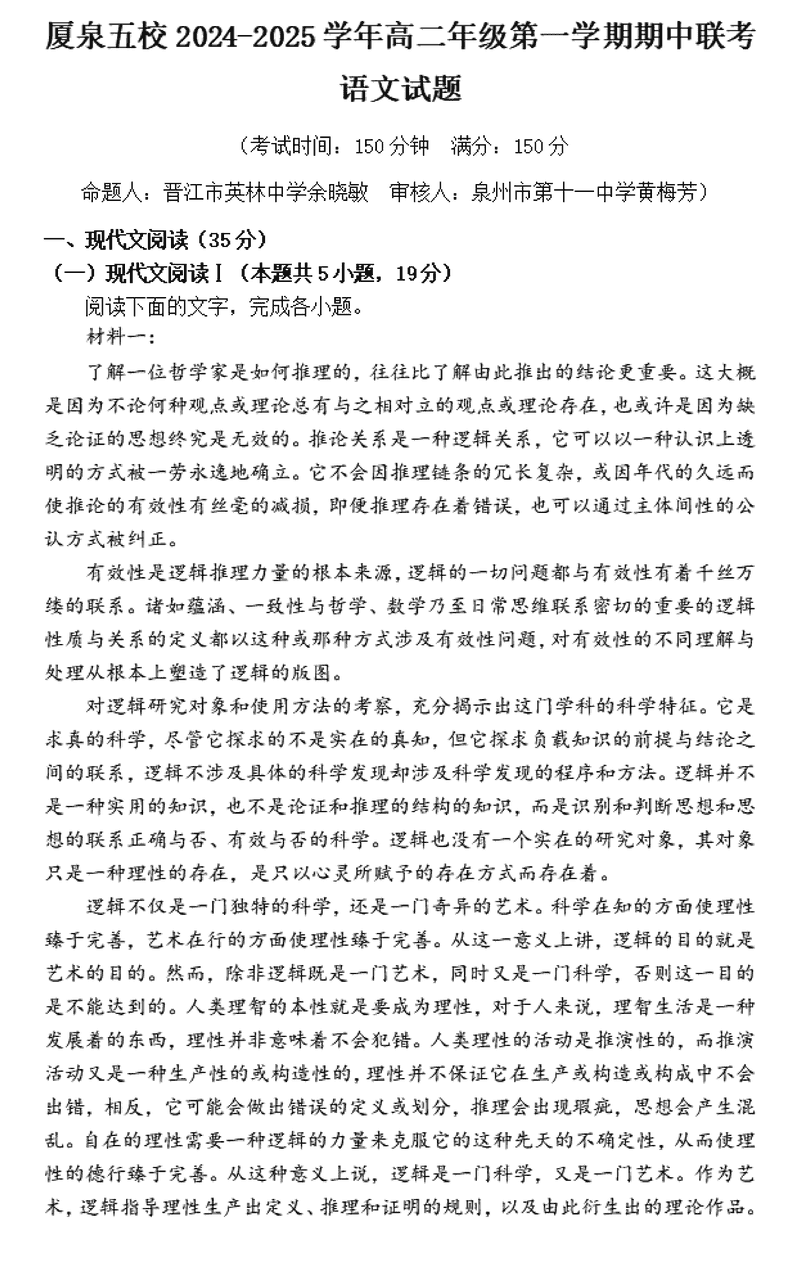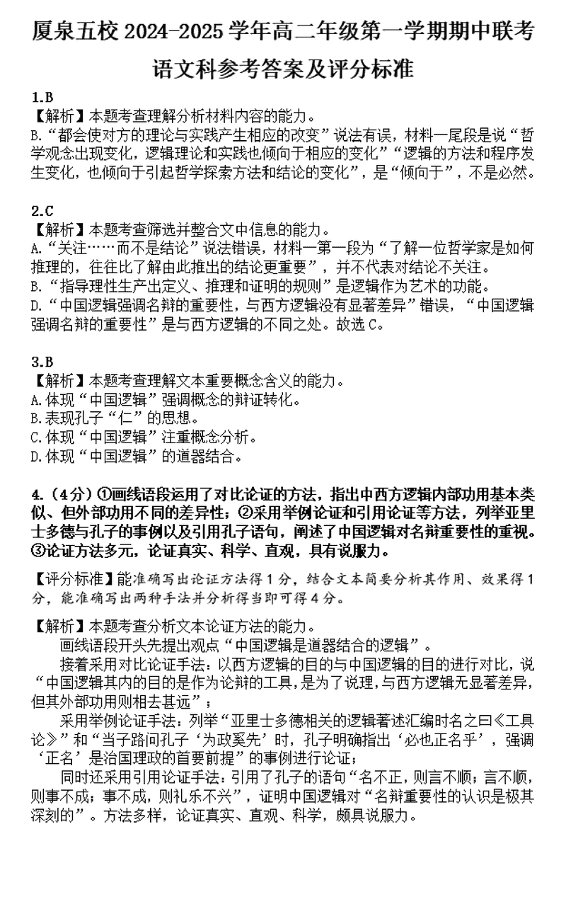厦泉五校2024年11月高二上学期期中联考语文试题及答案 时间:2024-11-26 22:32 福建 高中语文 厦门市、泉州市五校2024-2025学年高二上学期11月期中联考语文考试已于近日开考,为方便考生考后及时查看考试情况,查漏补缺、弥补不足,本文整理了试题答案解析相关信息! 语文试题及答案解析