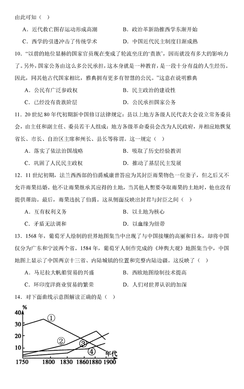 岳阳临湘2025届高三上学期11月期中历史试题及答案
