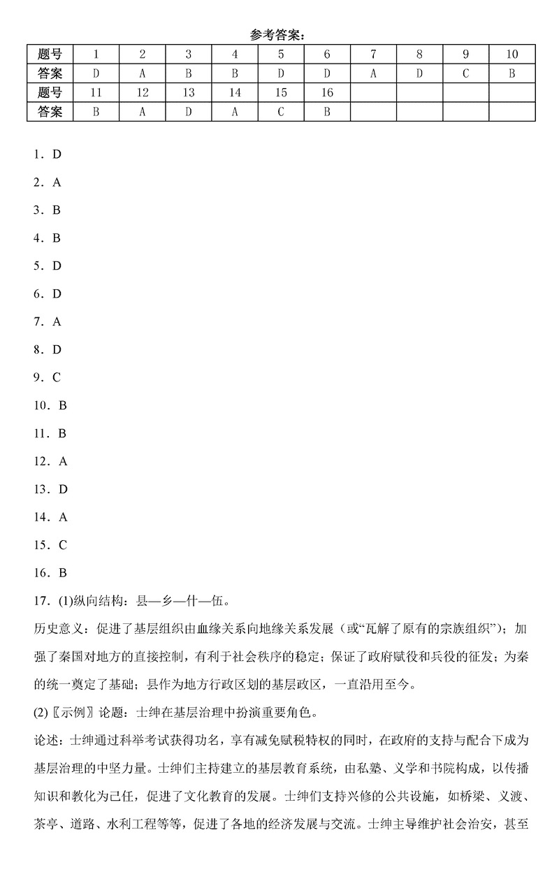 历史试题及答案解析