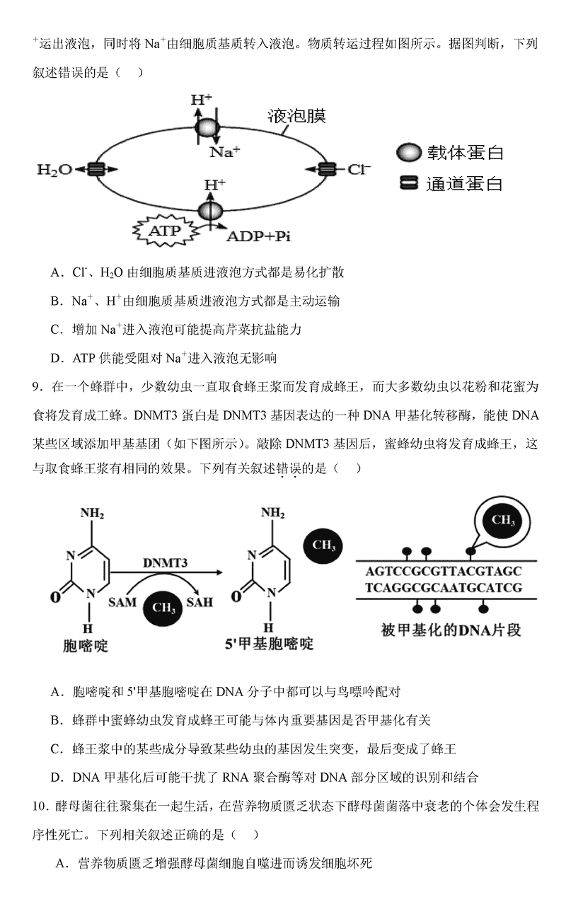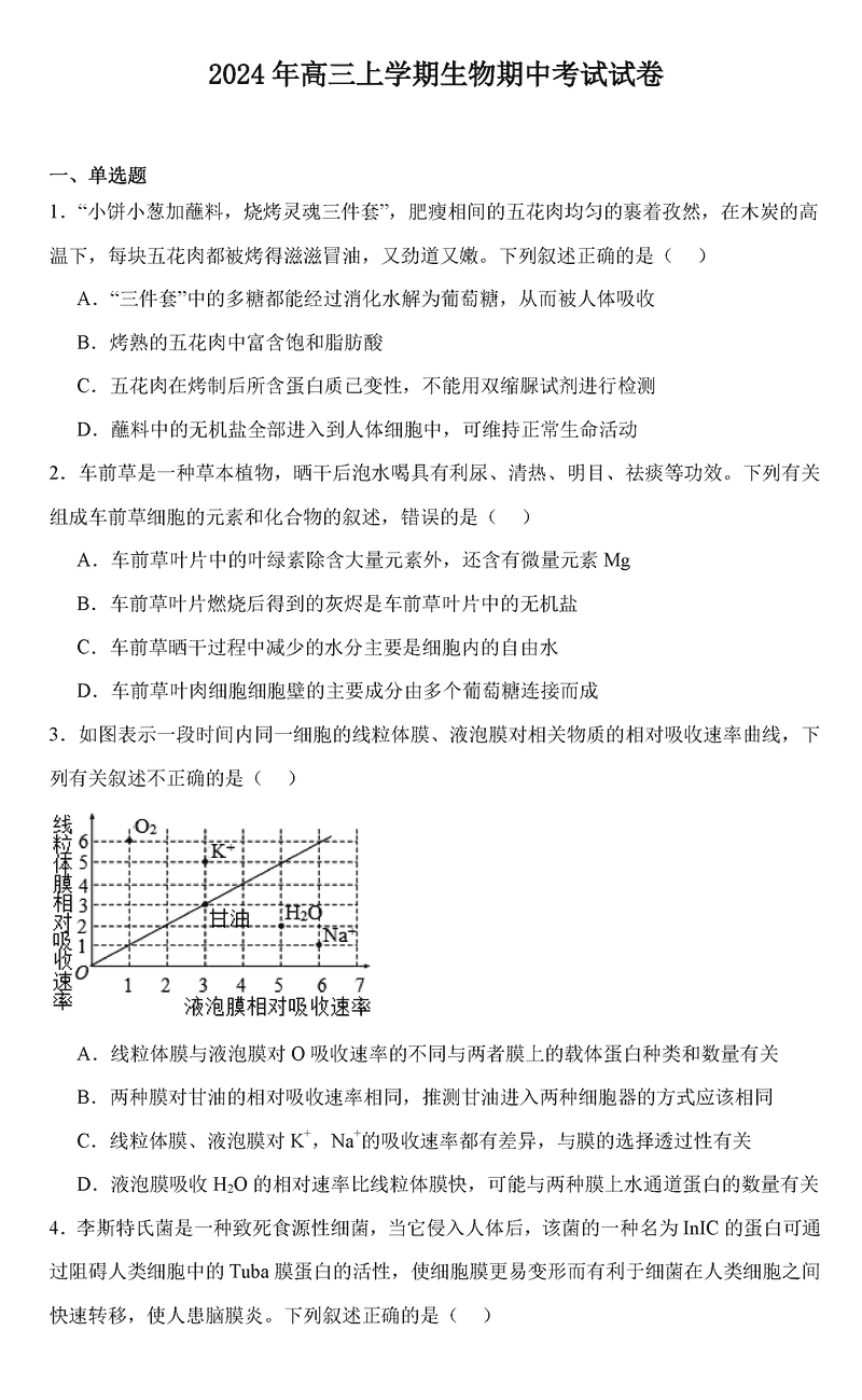 岳阳临湘2025届高三上学期11月期中生物试题及答案