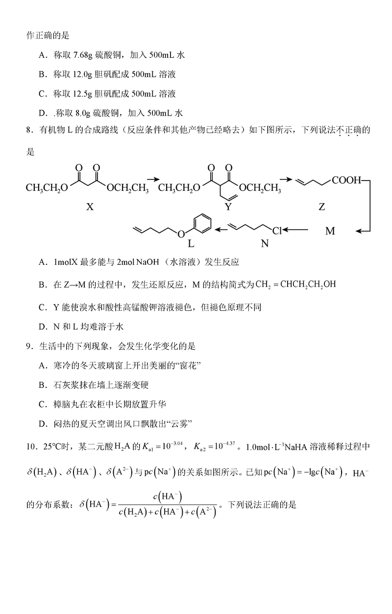 岳阳临湘2025届高三上学期11月期中化学试题及答案