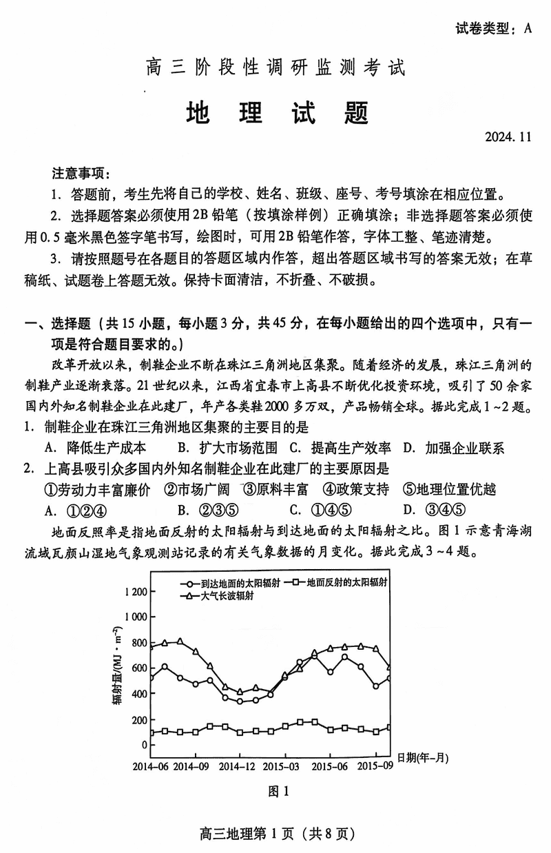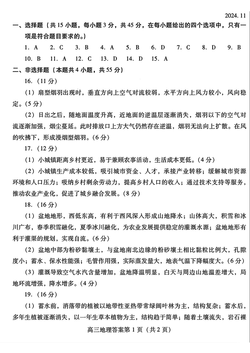 山东潍坊2024-2025学年高三上学期11月期中地理试题及答案